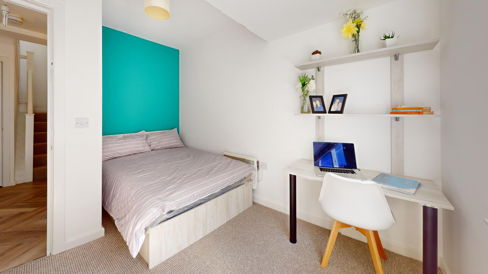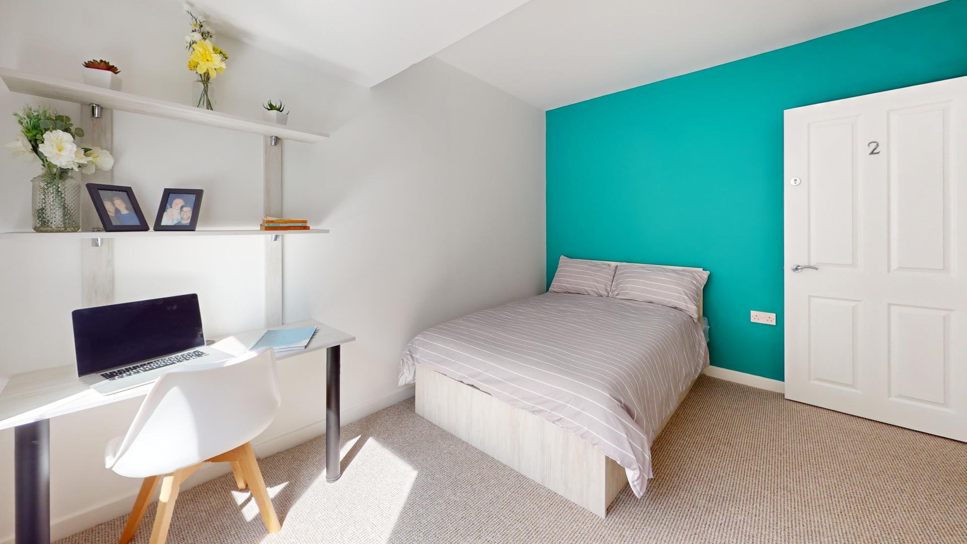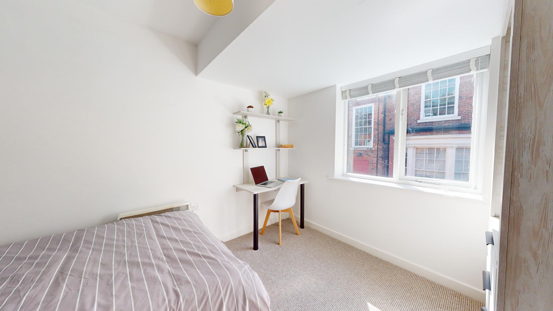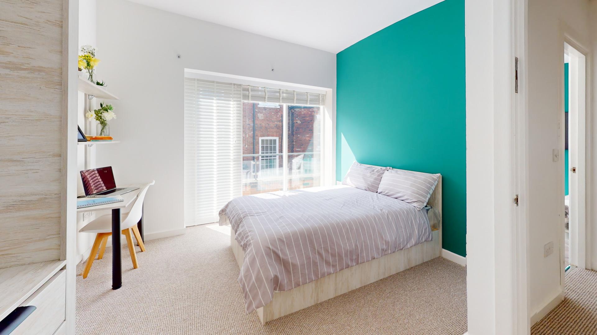 - Bedroom furniture: bed, desk, desk chair, wardrobe, and drawers