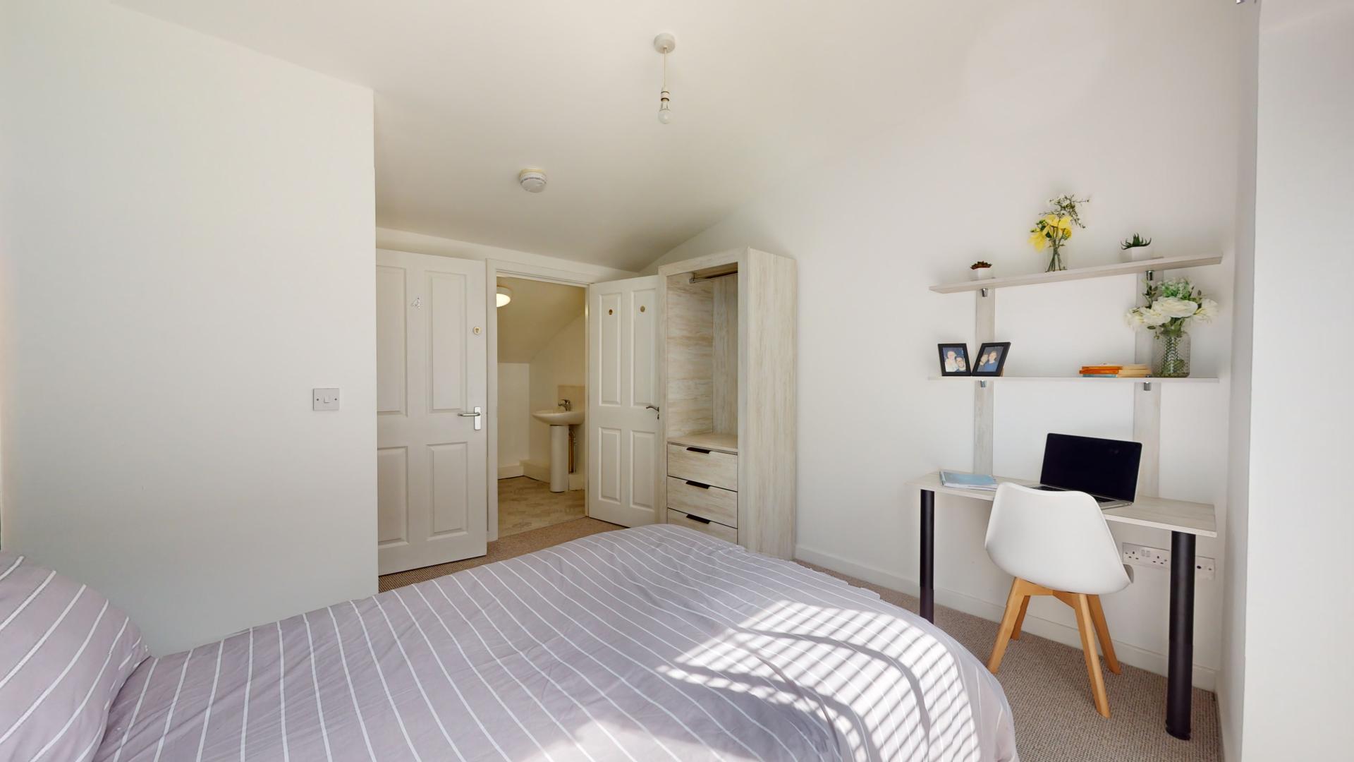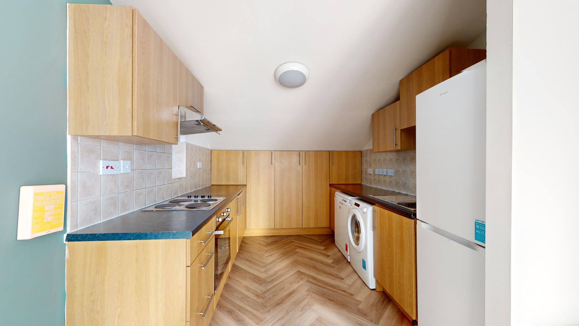 The first-floor property spans over two floors and features an open-plan kitchen living/area complete with appliances, offering a versatile space for cooking, dining, and relaxation. Four bedrooms ensure you have plenty of space for yourself and your housemates, with one of them even having an ensuite bathroom for added convenience. Plus, there's a balcony where you can enjoy some fresh air.