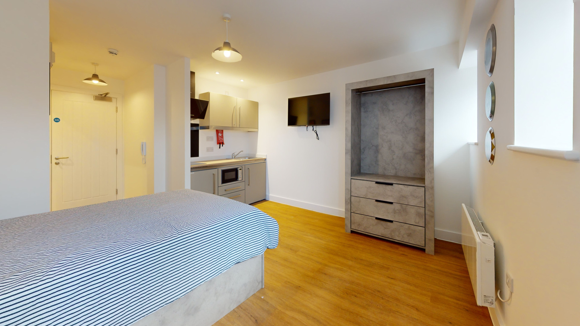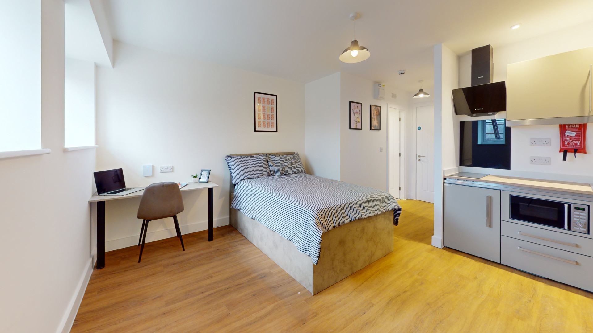 The studio offers a fully self-contained living space complete with an ensuite bathroom and a fully equipped kitchen, ensuring students have everything they need at their fingertips. Its prime location in the town centre places Tesco right next door, making grocery runs quick and hassle-free. Residents can also maintain an active lifestyle with the convenience of an onsite gym, while secure bike storage facilities provide peace of mind by protecting bicycles from potential theft or damage.