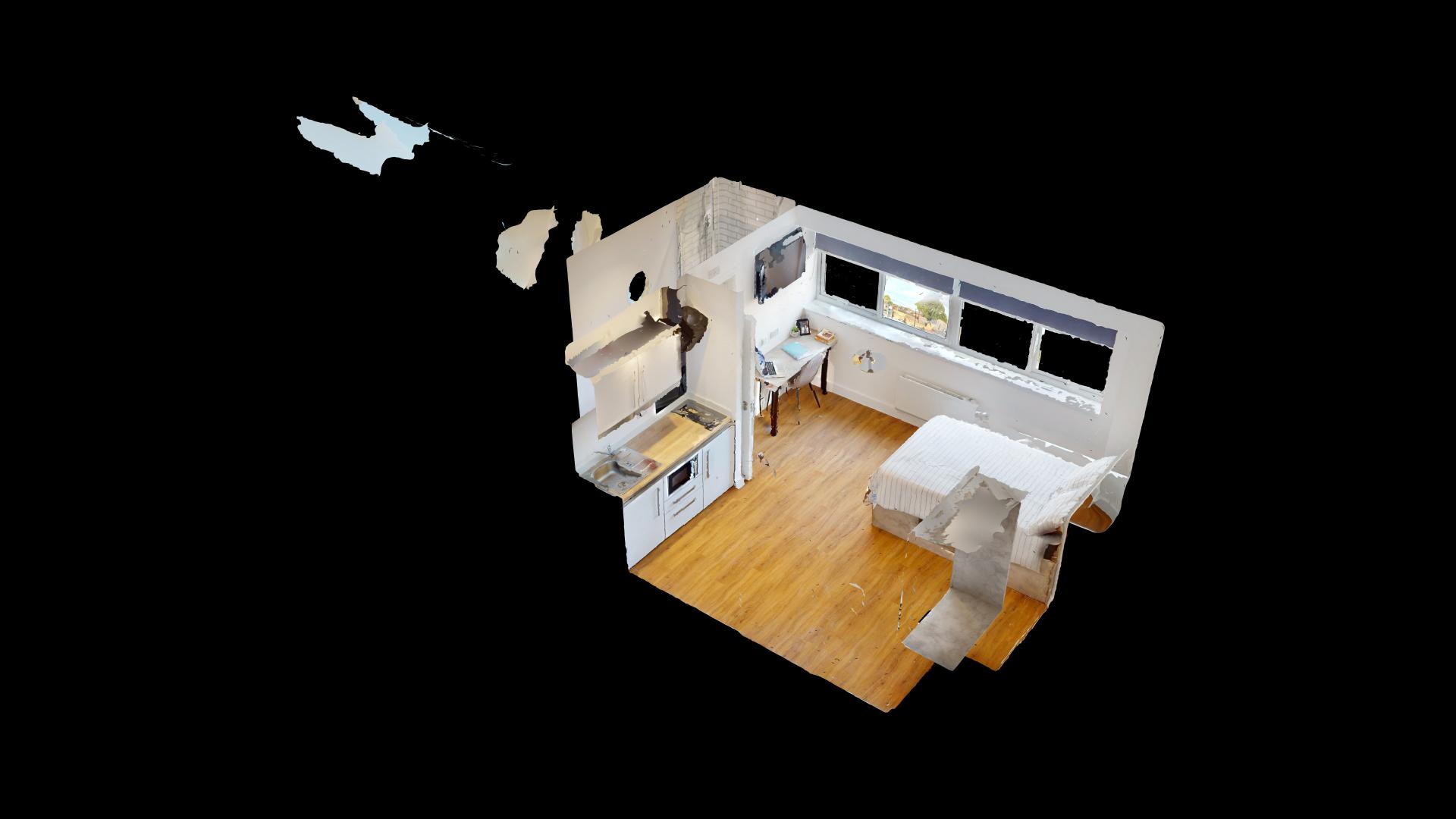 - Bedroom furniture: bed, desk, desk chair, wardrobe, and drawers