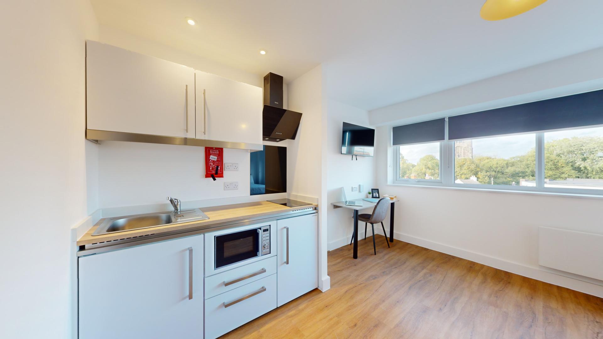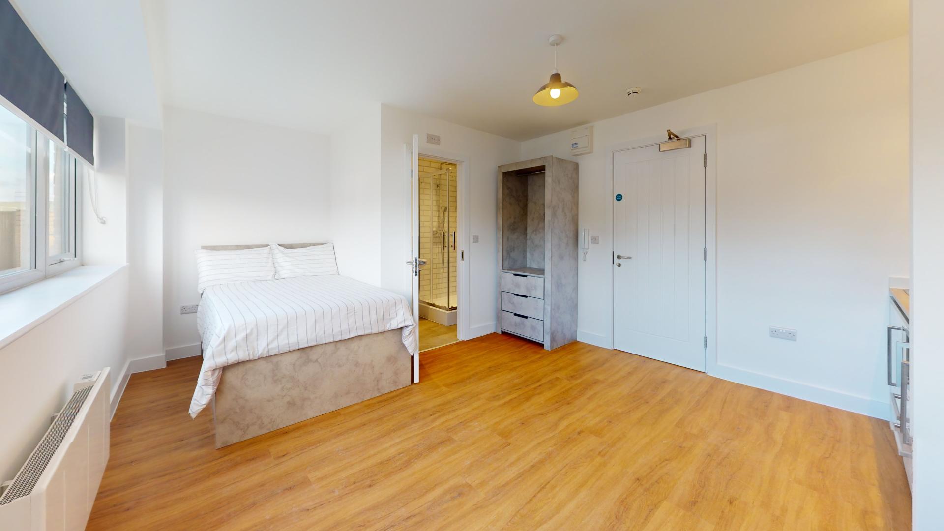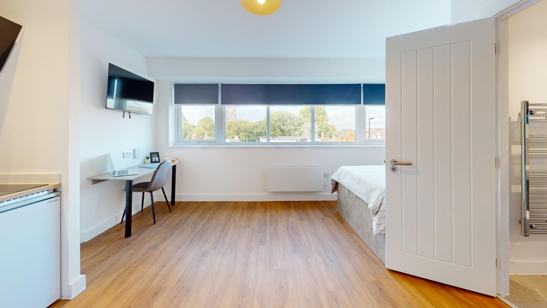The studio offers a fully self-contained living space complete with an ensuite bathroom and a fully equipped kitchen, ensuring students have everything they need at their fingertips. Its prime location in the town centre places Tesco right next door, making grocery runs quick and hassle-free. Residents can also maintain an active lifestyle with the convenience of an onsite gym, while secure bike storage facilities provide peace of mind by protecting bicycles from potential theft or damage.