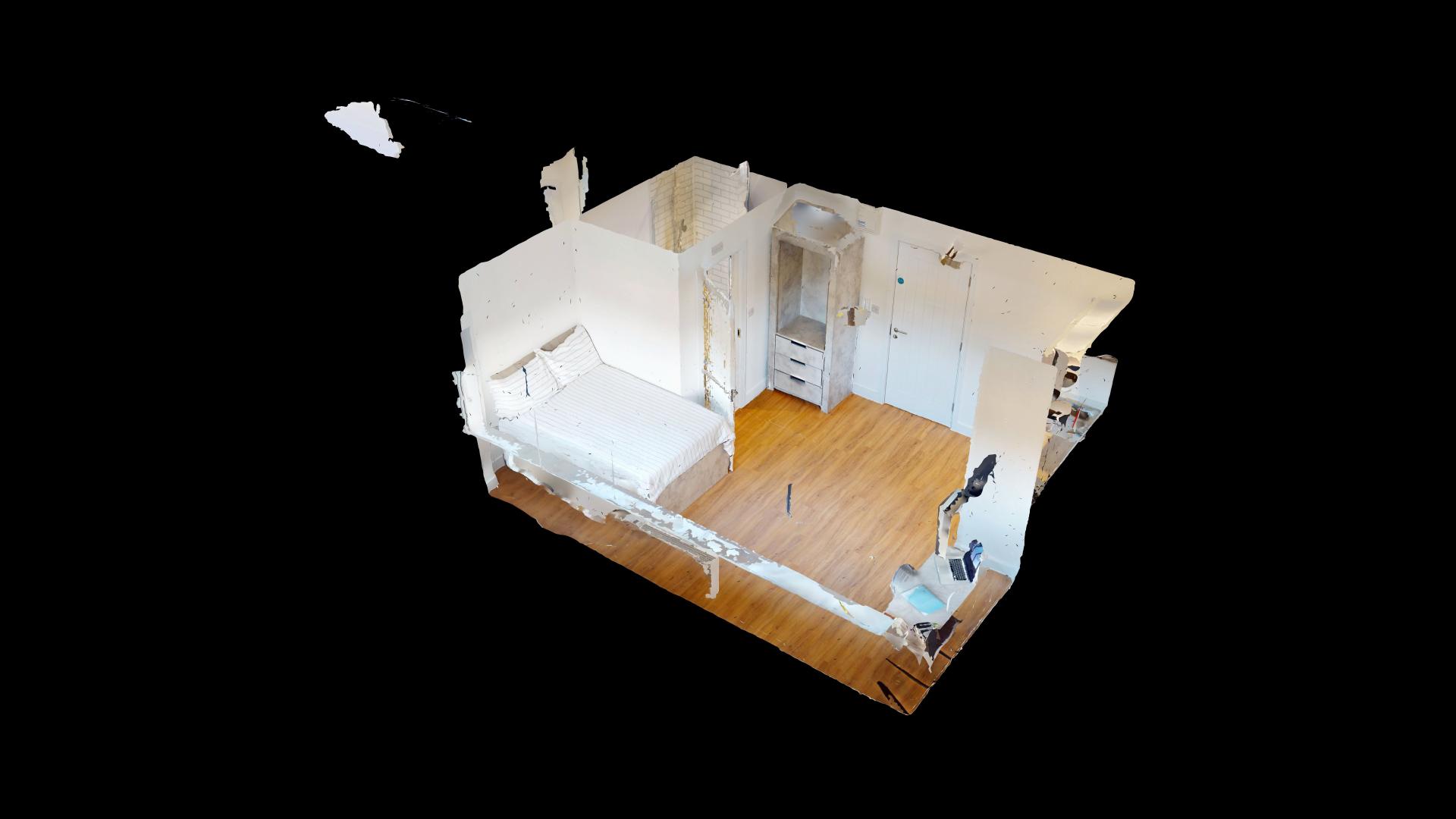 - Bedroom furniture: bed, desk, desk chair, wardrobe, and drawers