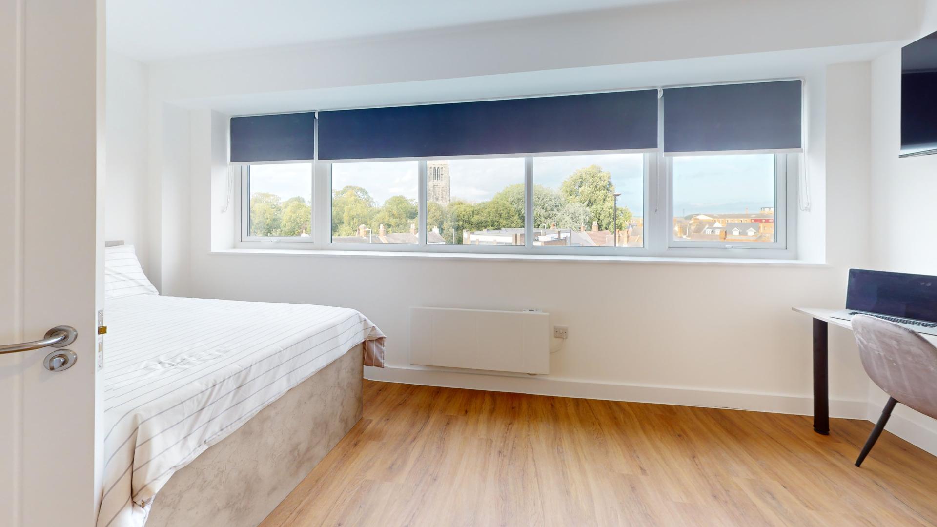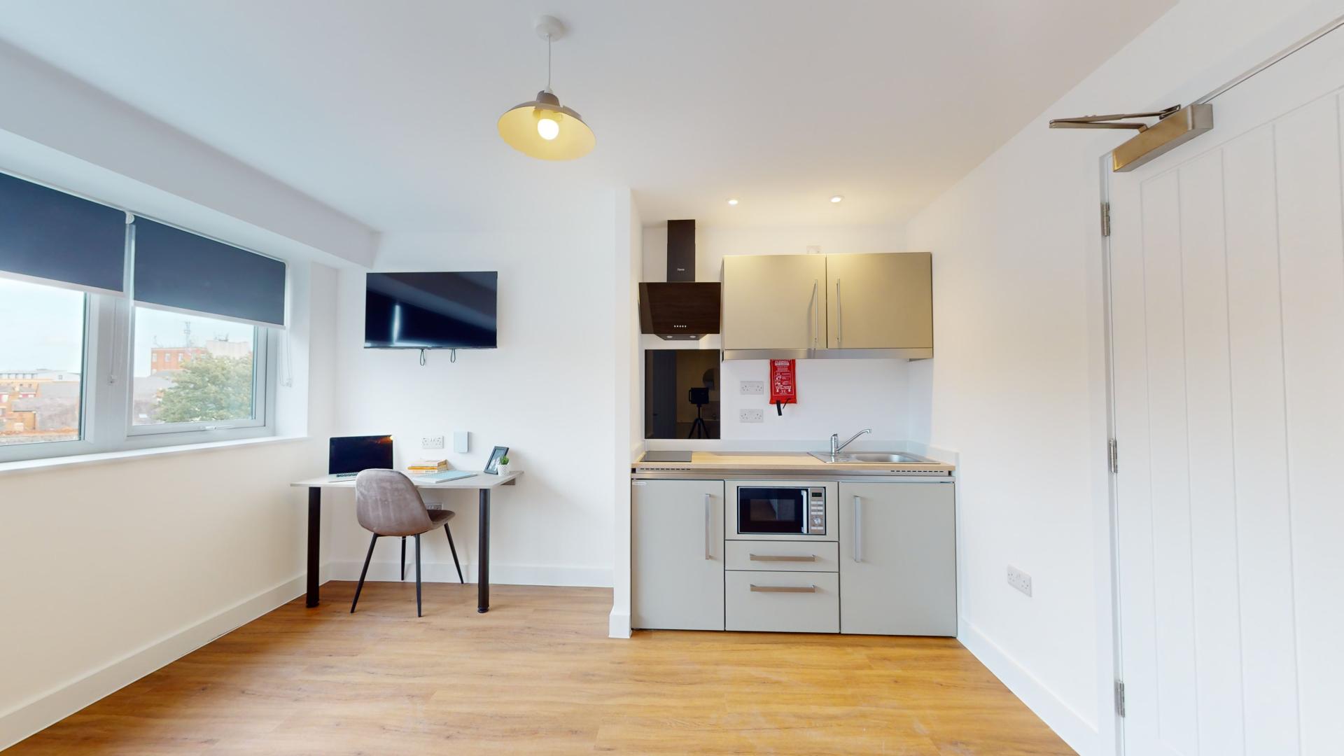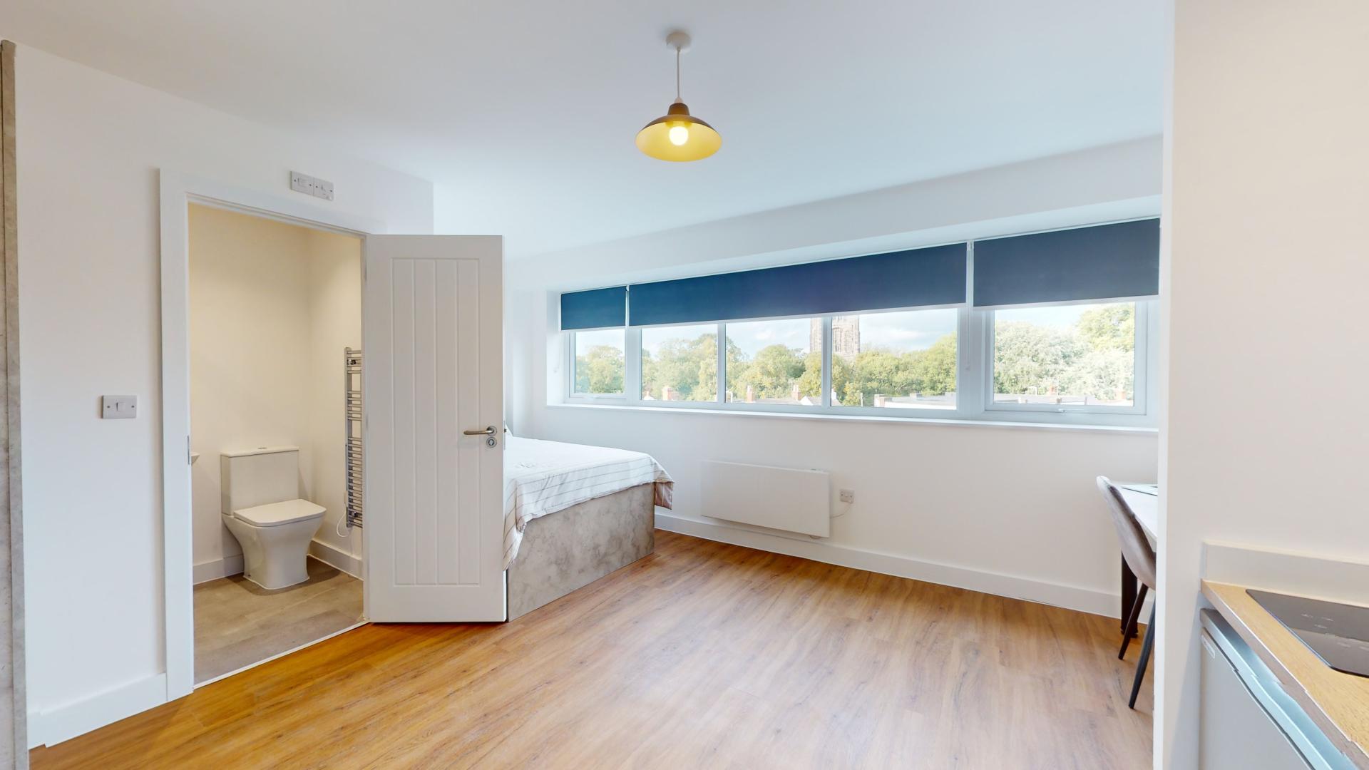 The studio offers a fully self-contained living space complete with an ensuite bathroom and a fully equipped kitchen, ensuring students have everything they need at their fingertips. Its prime location in the town centre places Tesco right next door, making grocery runs quick and hassle-free. Residents can also maintain an active lifestyle with the convenience of an onsite gym, while secure bike storage facilities provide peace of mind by protecting bicycles from potential theft or damage.