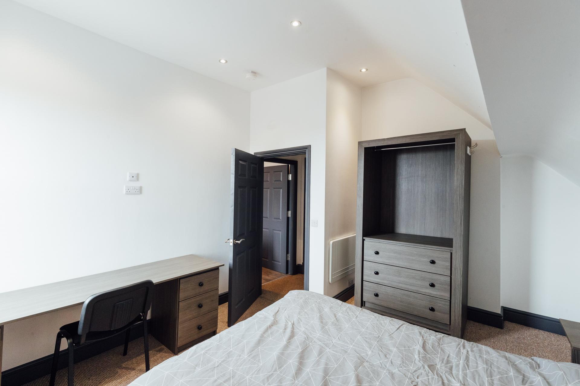 - Bedroom furniture: bed, desk, desk chair, wardrobe, and drawers