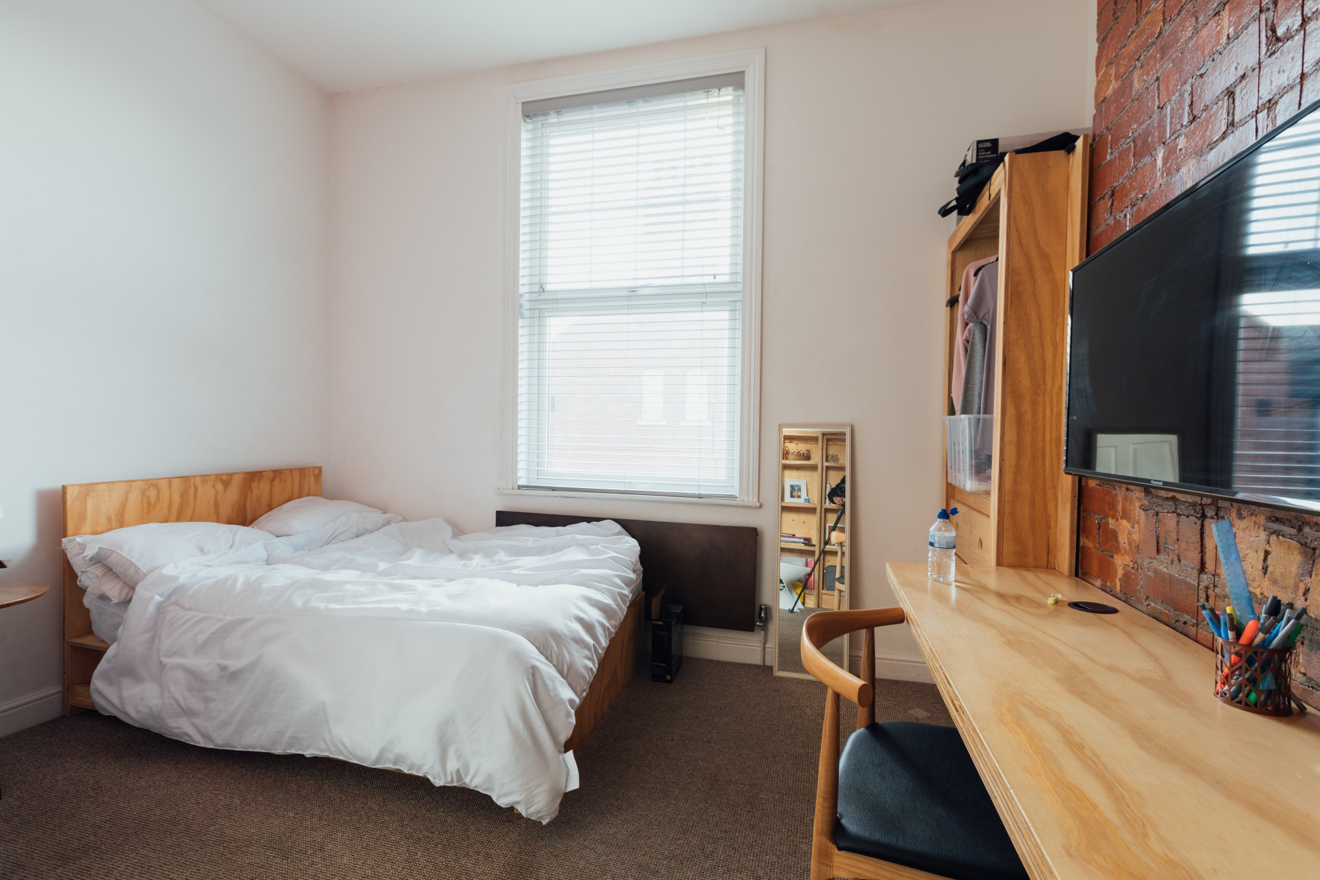 - Bedroom furniture: bed, desk, desk chair, wardrobe, and drawers