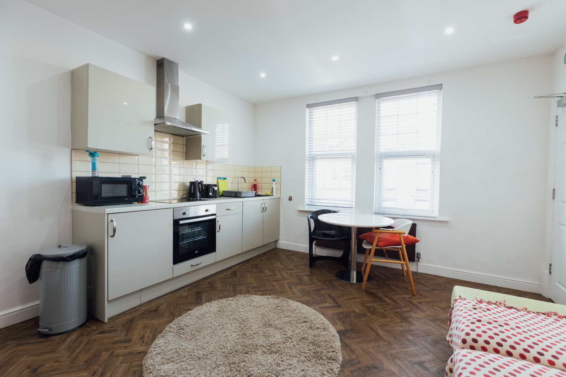 Modern Aesthetics with Function: Experience a living space where contemporary design meets practical functionality. The flat features a sleek, streamlined interior enhanced by bespoke fitted furniture, blending modern style with everyday convenience.