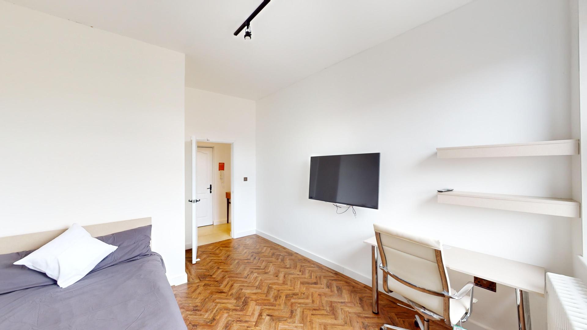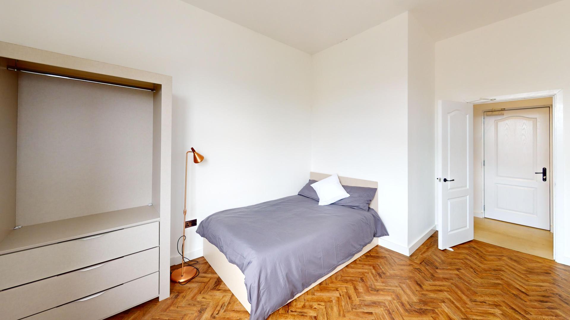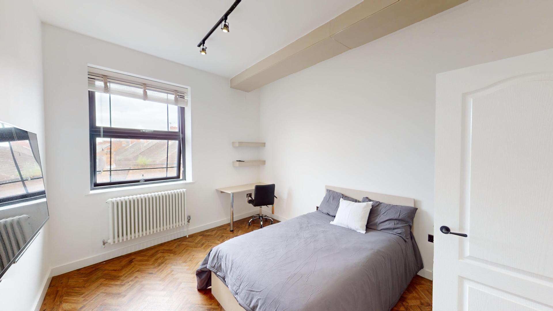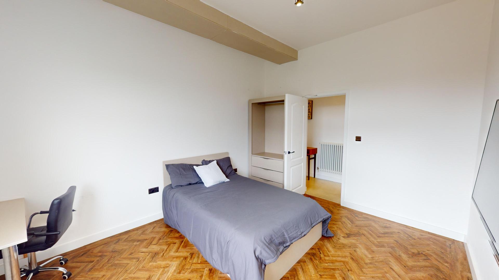 - Bedroom furniture: bed, desk, desk chair, wardrobe, and drawers