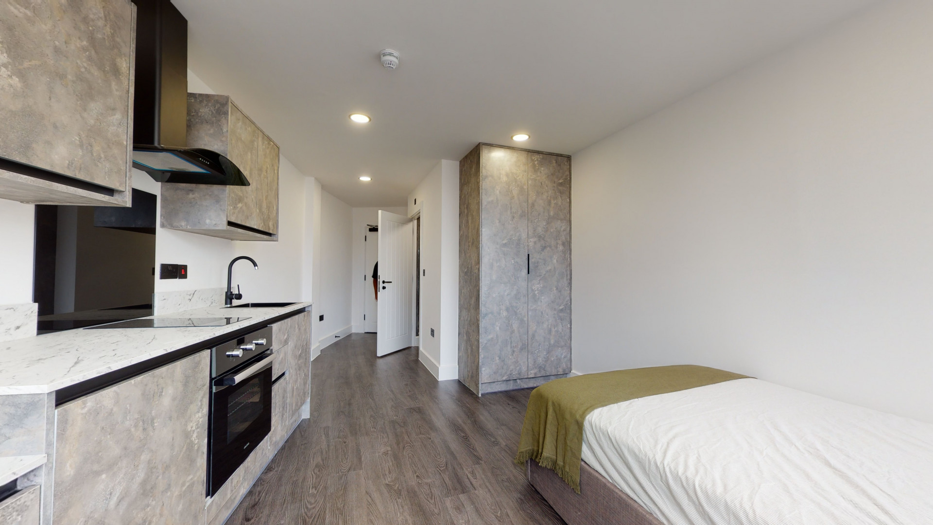 Introducing a stylish one-bedroom studio thoughtfully designed with students in mind. Nestled in the vibrant city center, this accommodation offers unparalleled access to nearby shops and restaurants, ensuring convenience and a lively atmosphere right at your doorstep.