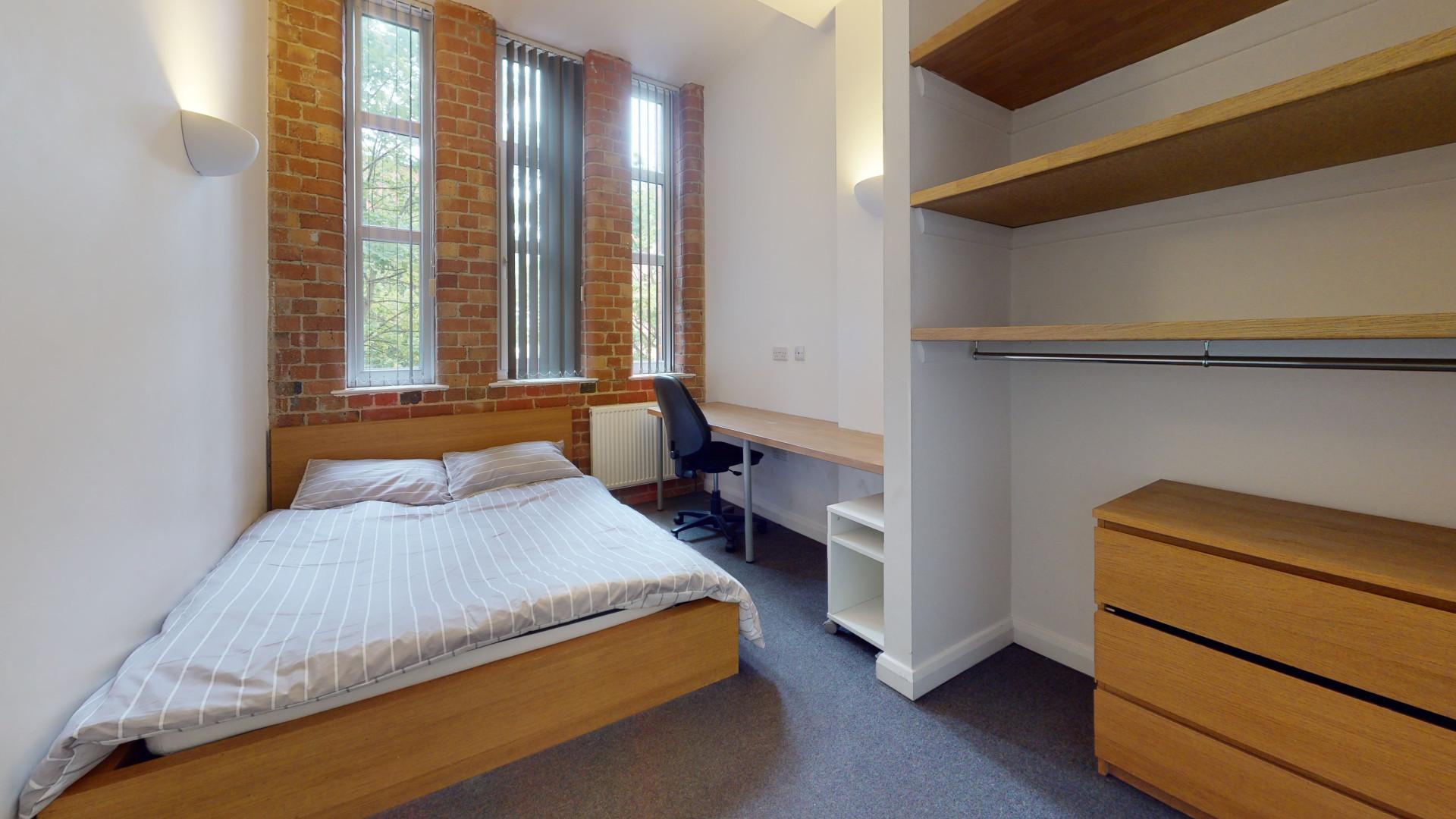 All bedrooms come with double bed, desk, chair, built in storage with hanging rail and draws. The rooms also have large double glazed windows perfect for letting in the natural light and blinds to shut it out when you want to sleep.