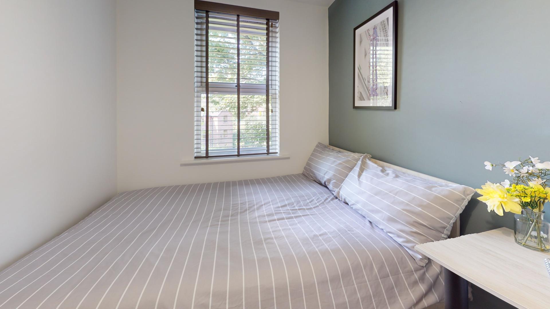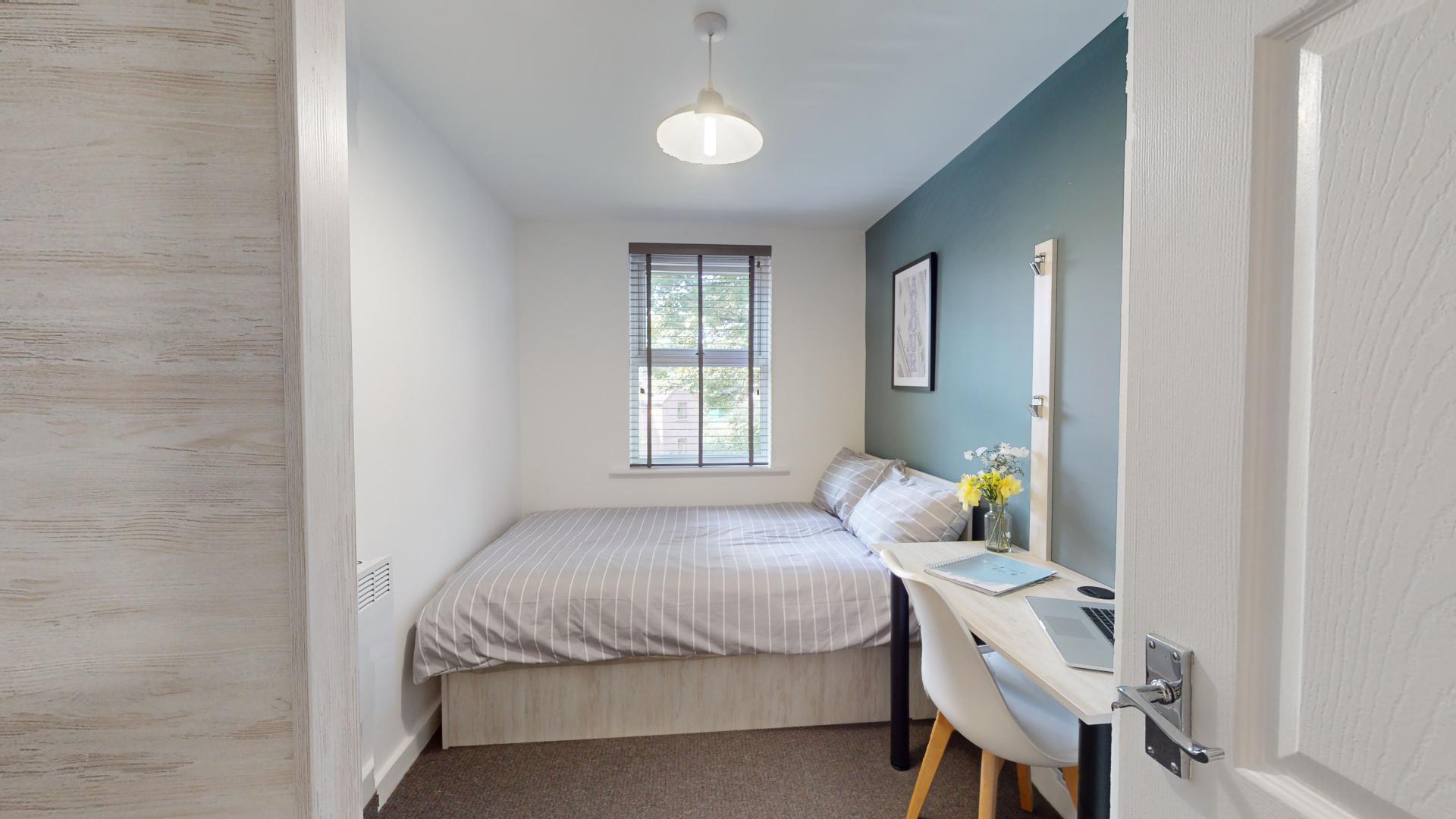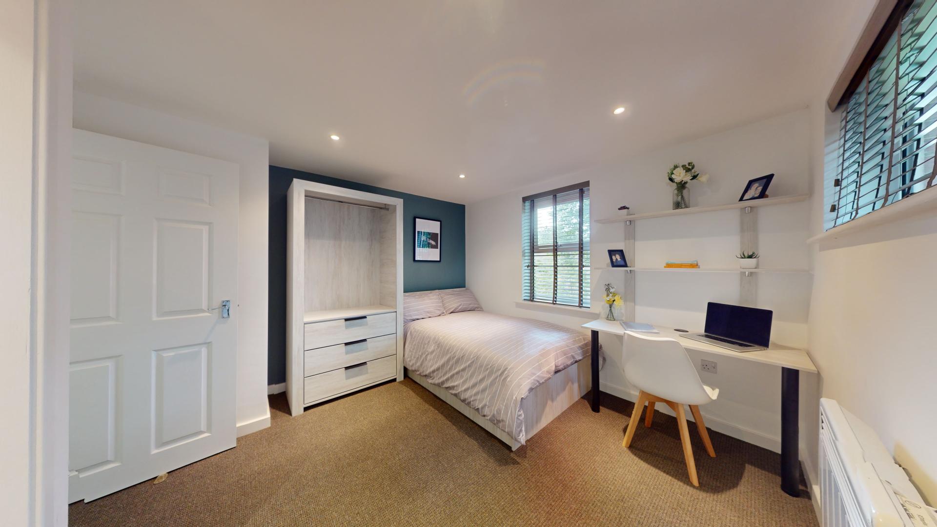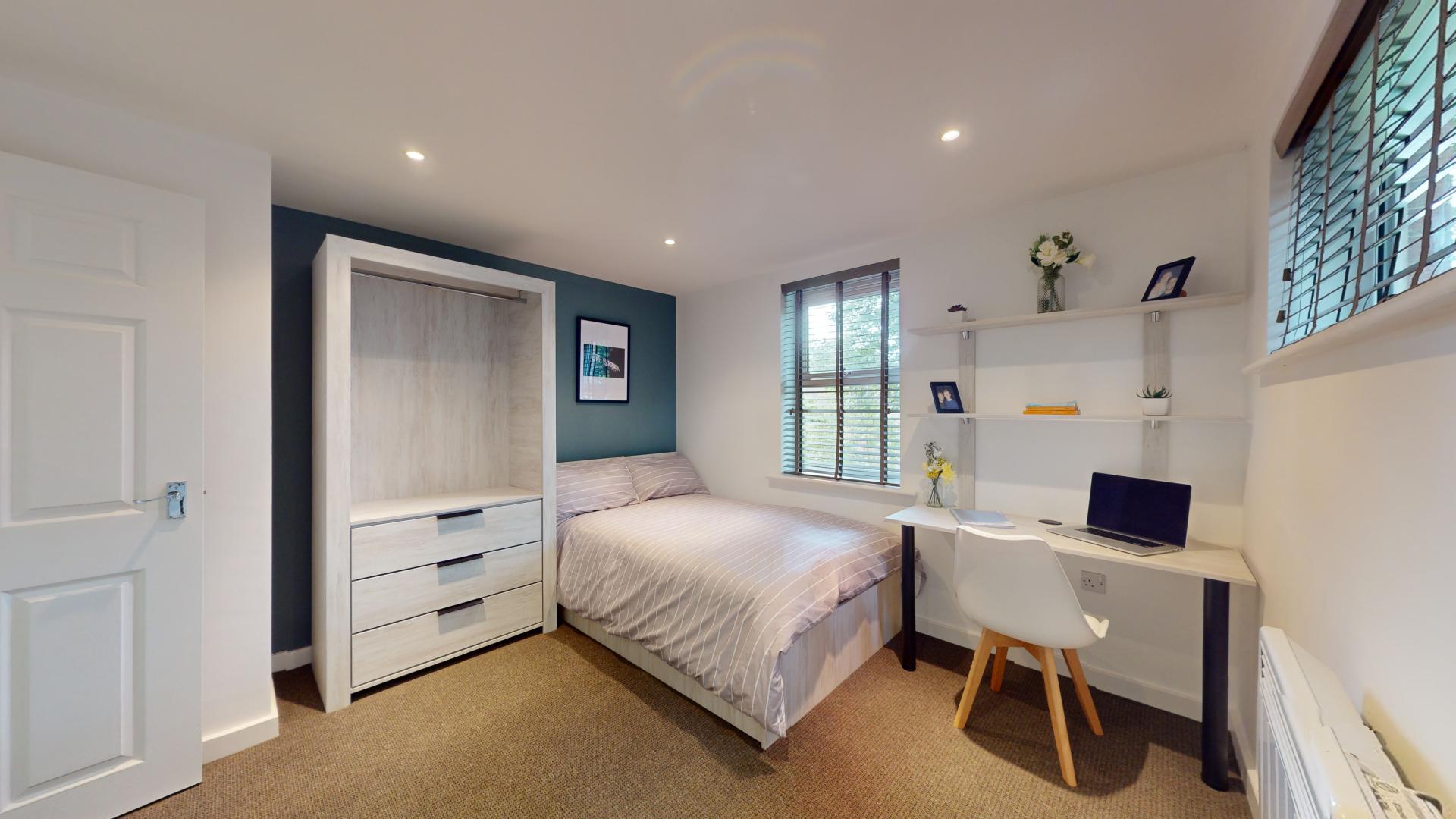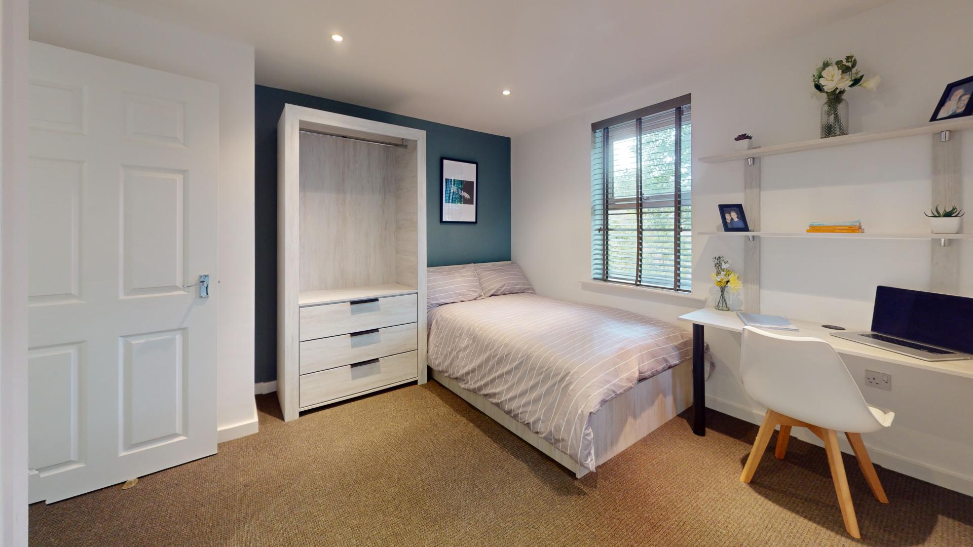 - Bedroom furniture: bed, desk, desk chair, wardrobe, and drawers