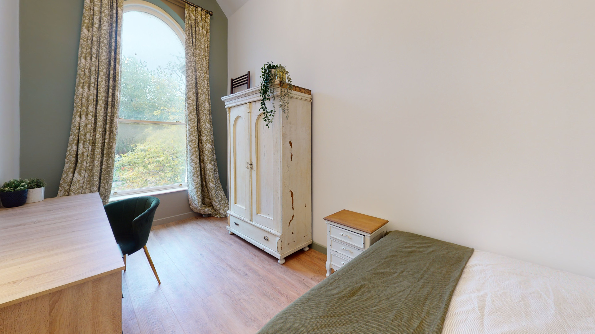 - Bedroom furniture: bed, desk, desk chair, wardrobe, and drawers
