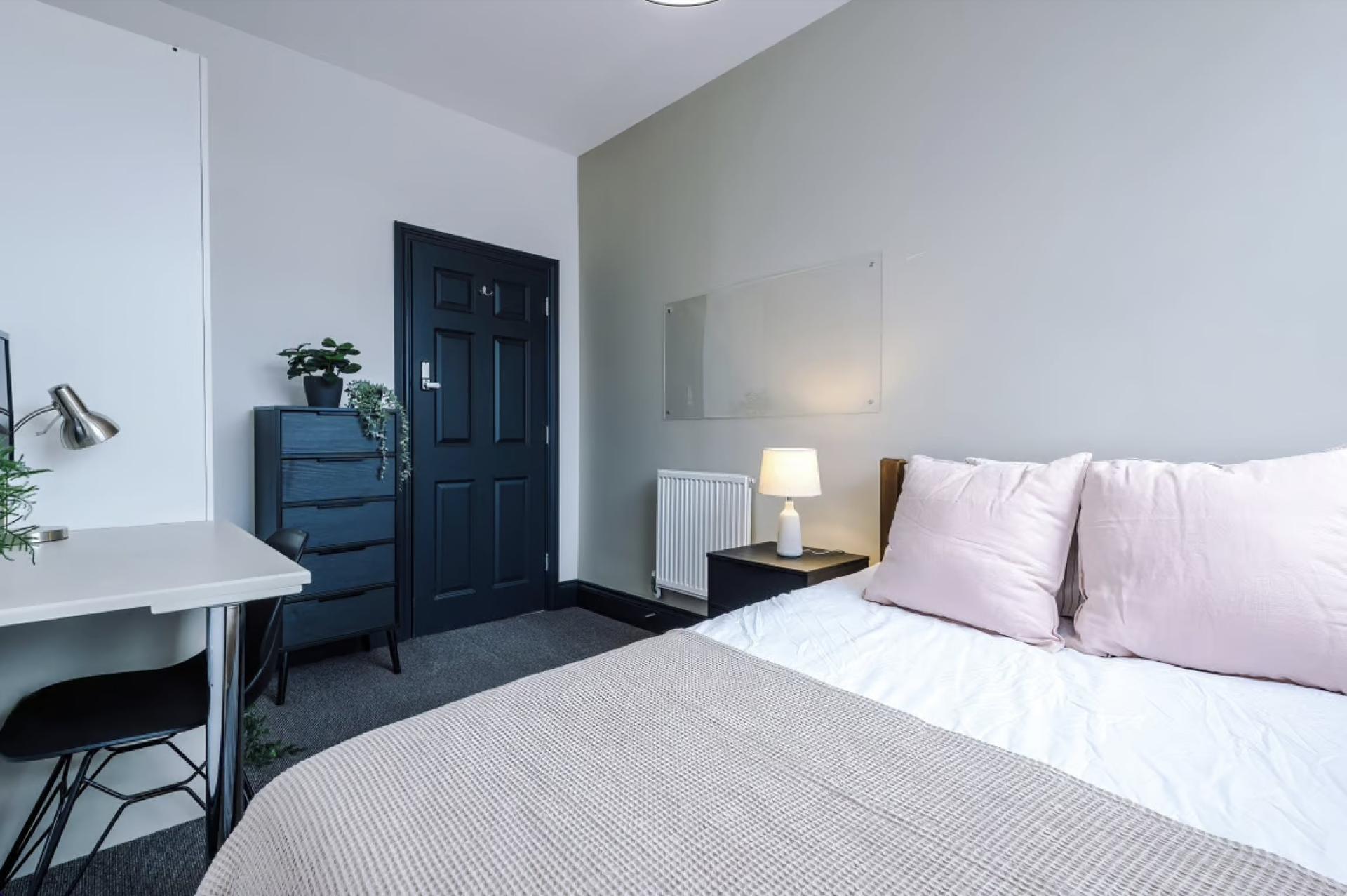 - Bedroom furniture: bed, desk, desk chair, wardrobe, and drawers