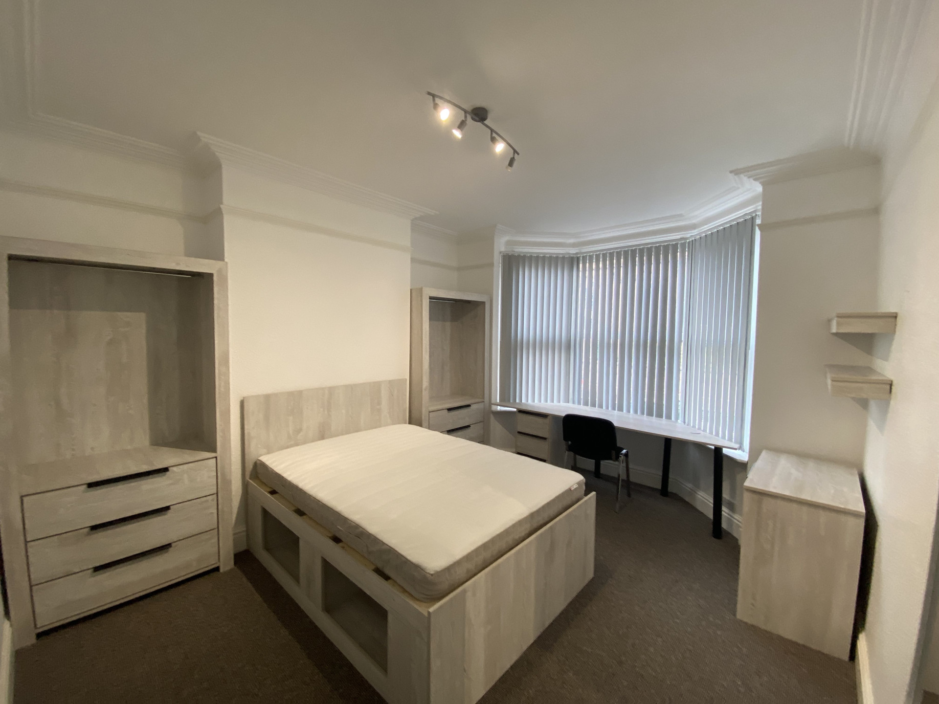 • Bedroom furniture: bed, desk, desk chair, wardrobe, and drawers