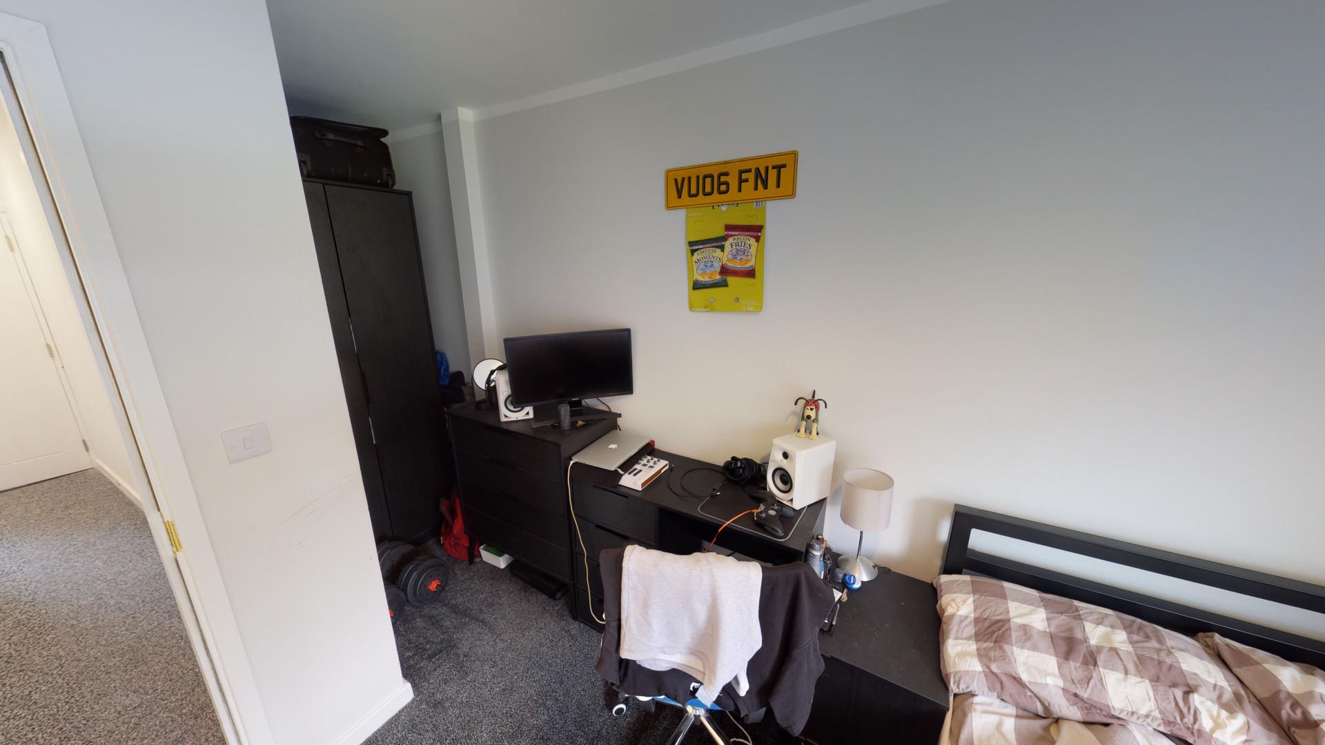 Upon entering, you'll find yourself in an open-plan kitchen/living area designed for communal living and relaxation. The modern kitchen is equipped with essential appliances, facilitating shared meals and social gatherings. A large TV in the living area serves as a focal point for entertainment and relaxation.