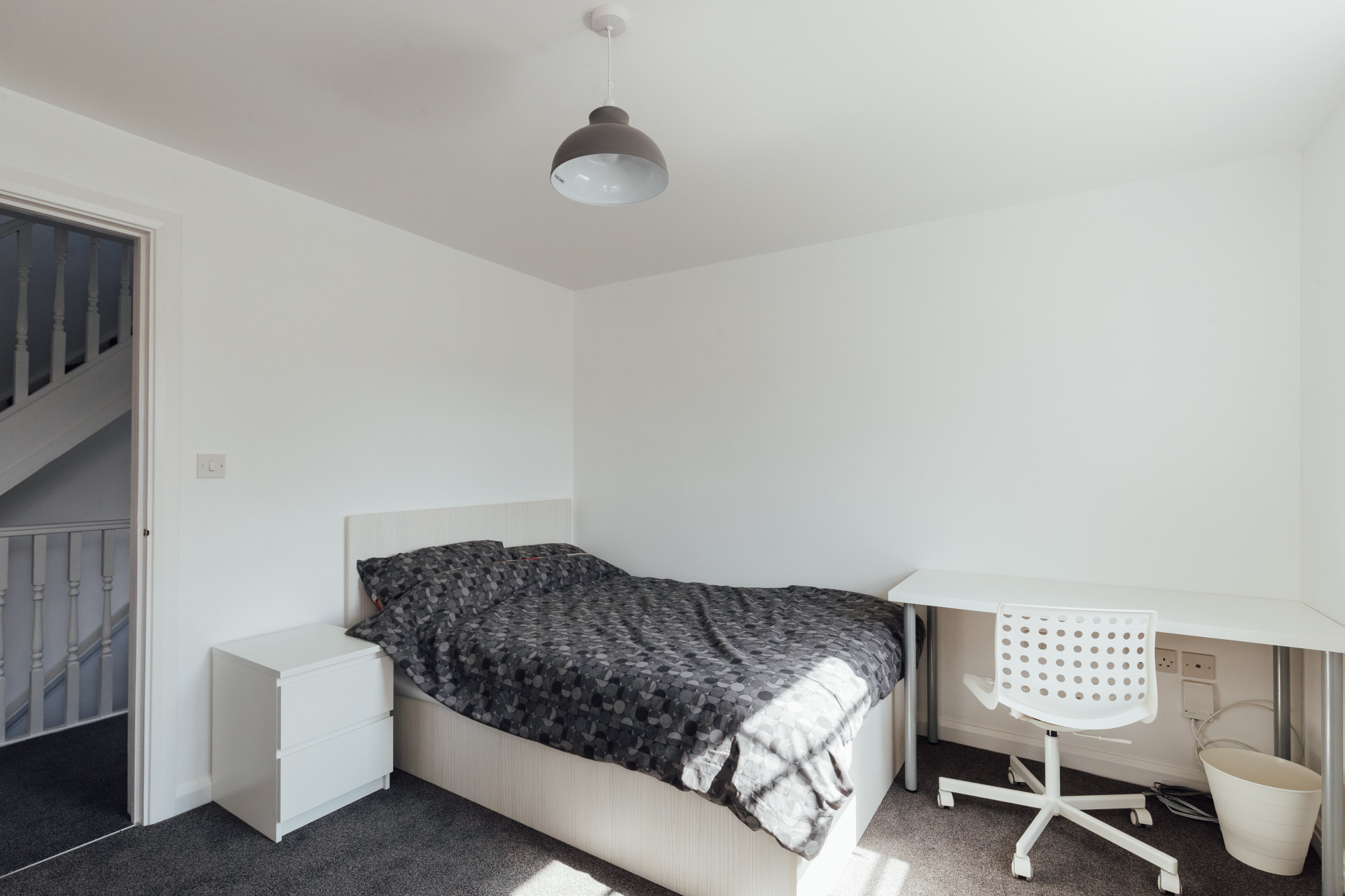 - Bedroom furniture: bed, desk, desk chair, wardrobe, and drawers