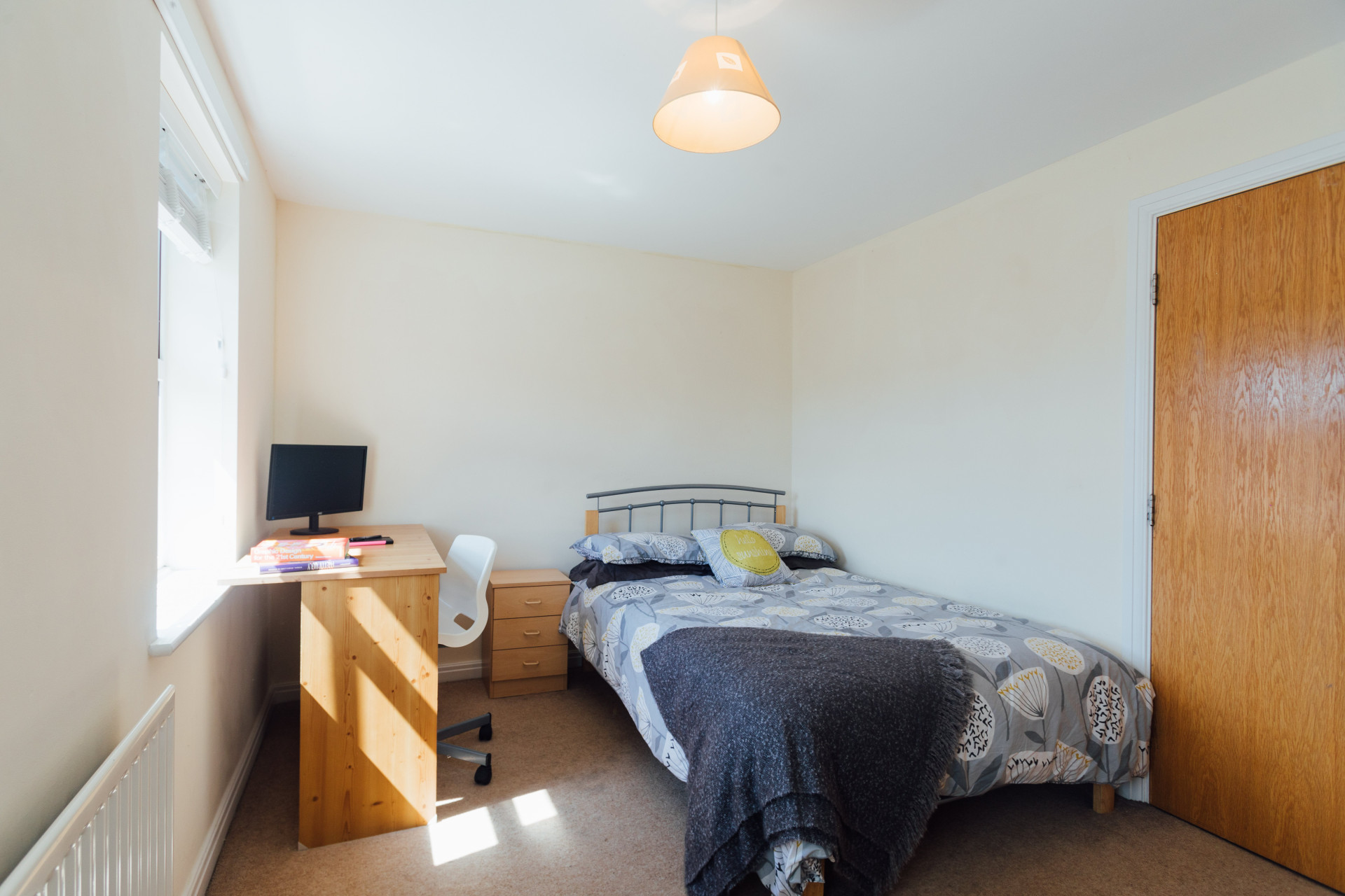 - Bedroom furniture: bed, desk, desk chair, wardrobe, and drawers