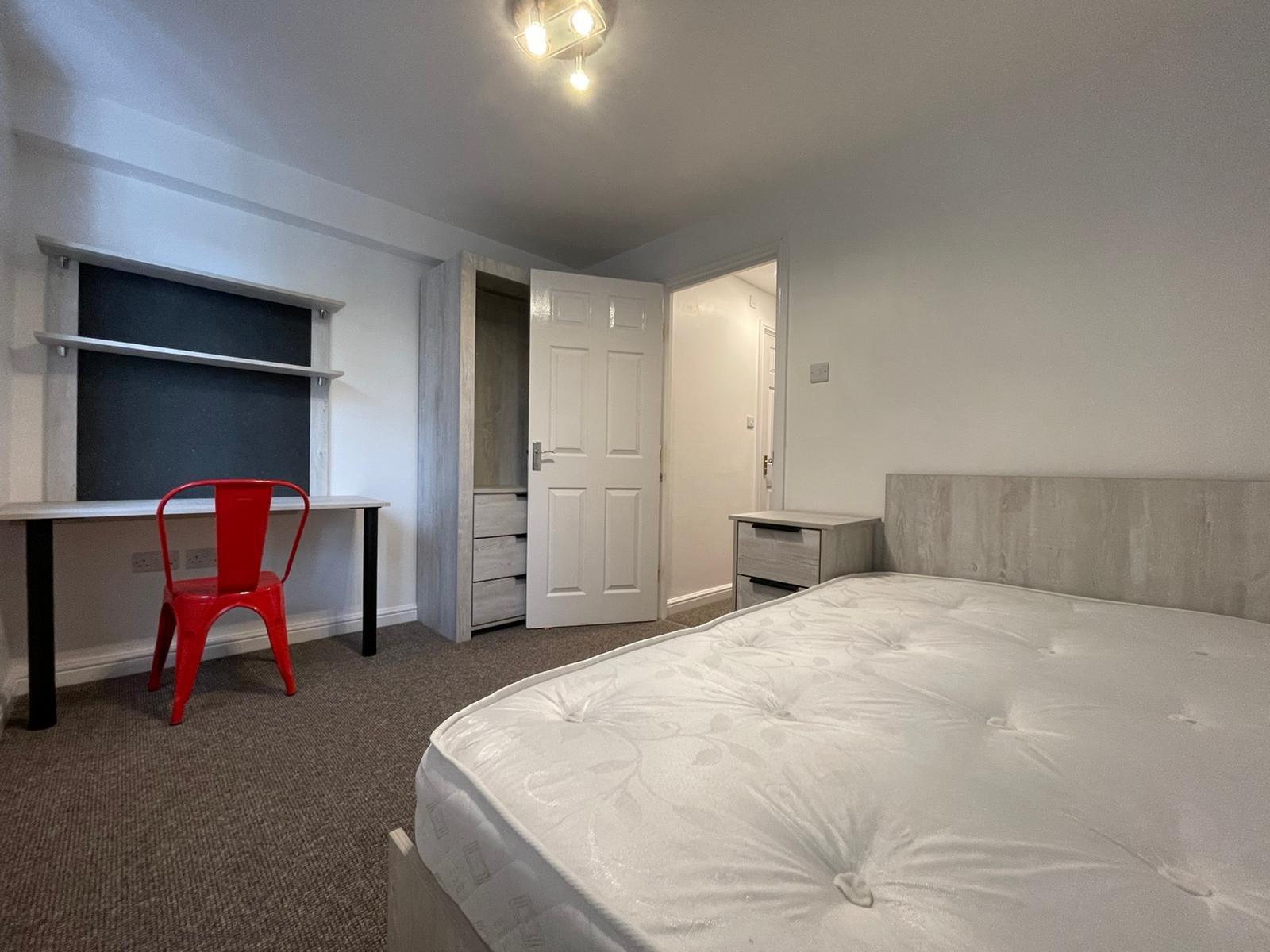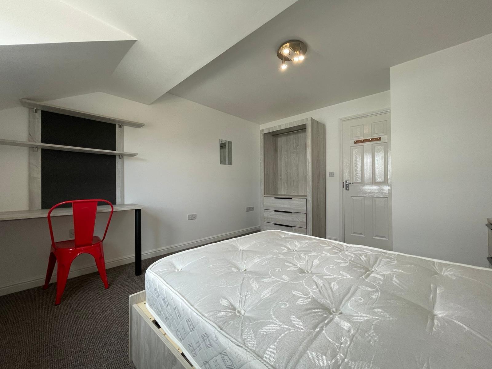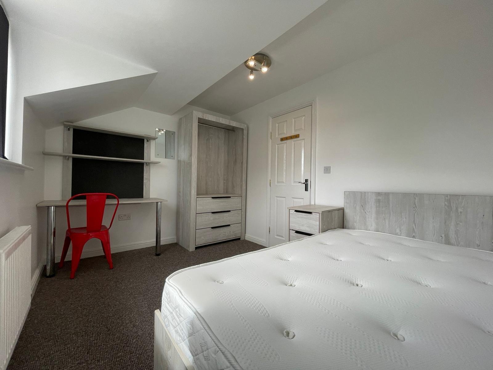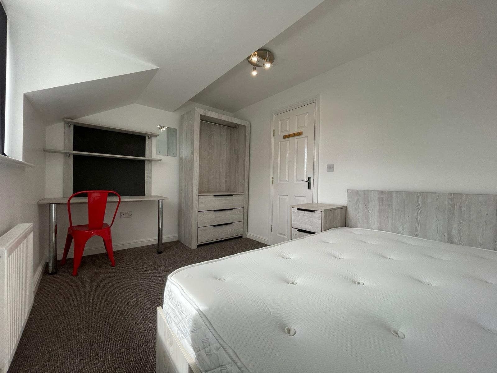 - Bedroom furniture: bed, desk, desk chair, wardrobe, and drawers