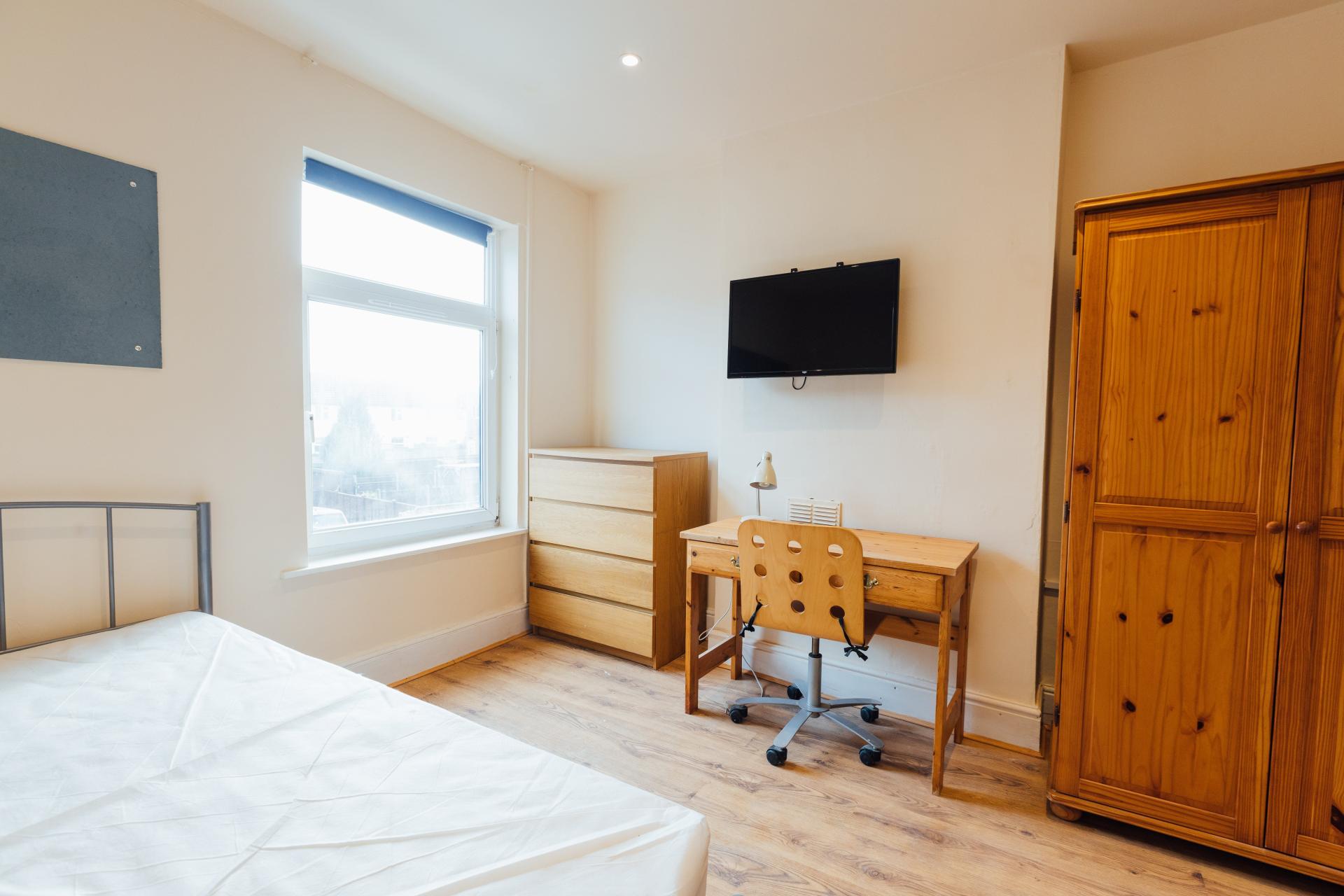 - Bedroom furniture: bed, desk, desk chair, wardrobe, and drawers