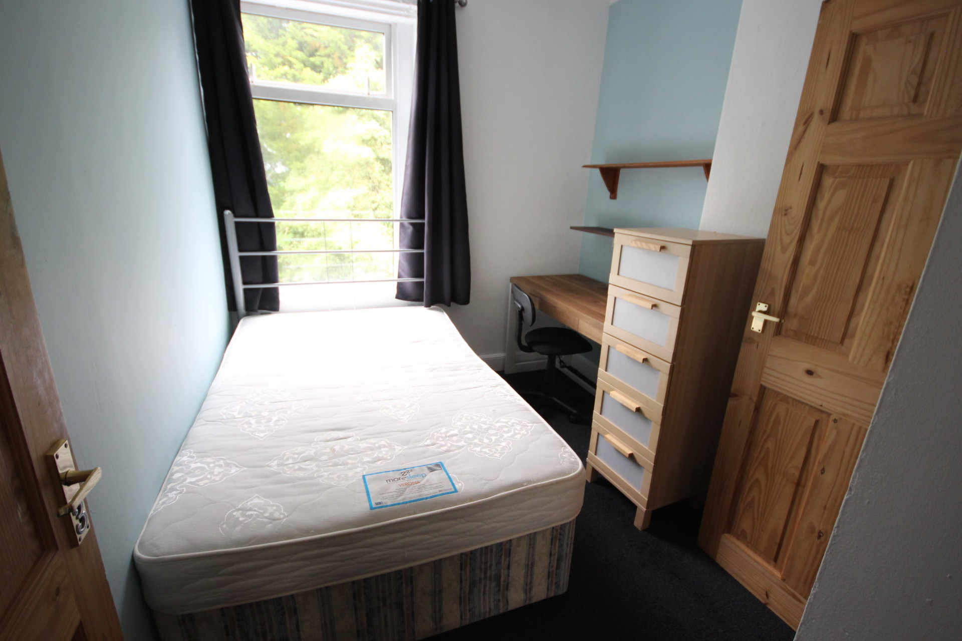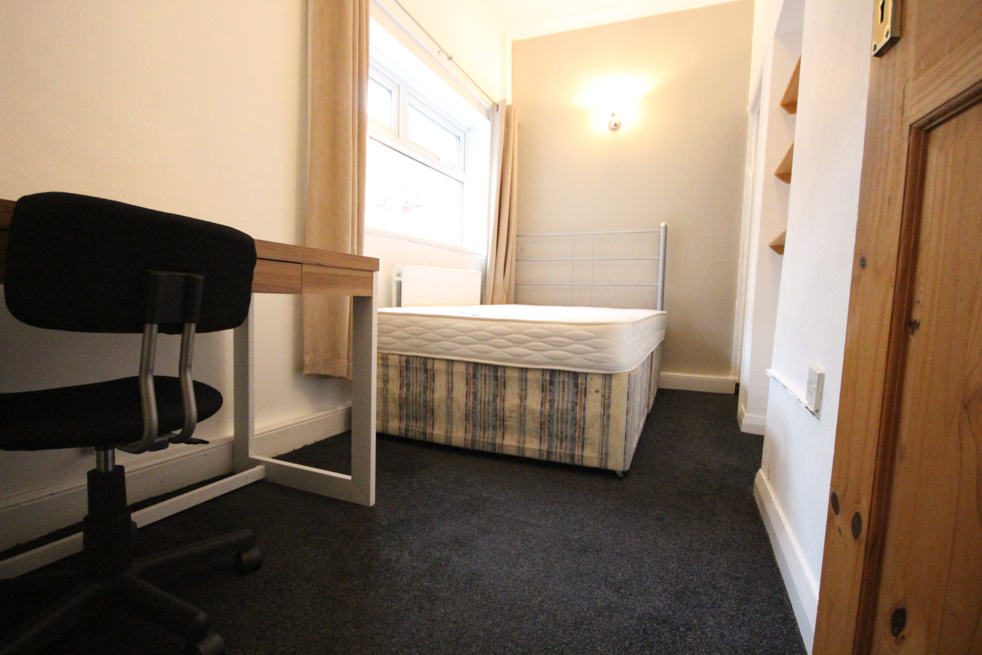 - Bedroom furniture: bed, desk, desk chair, wardrobe, and drawers