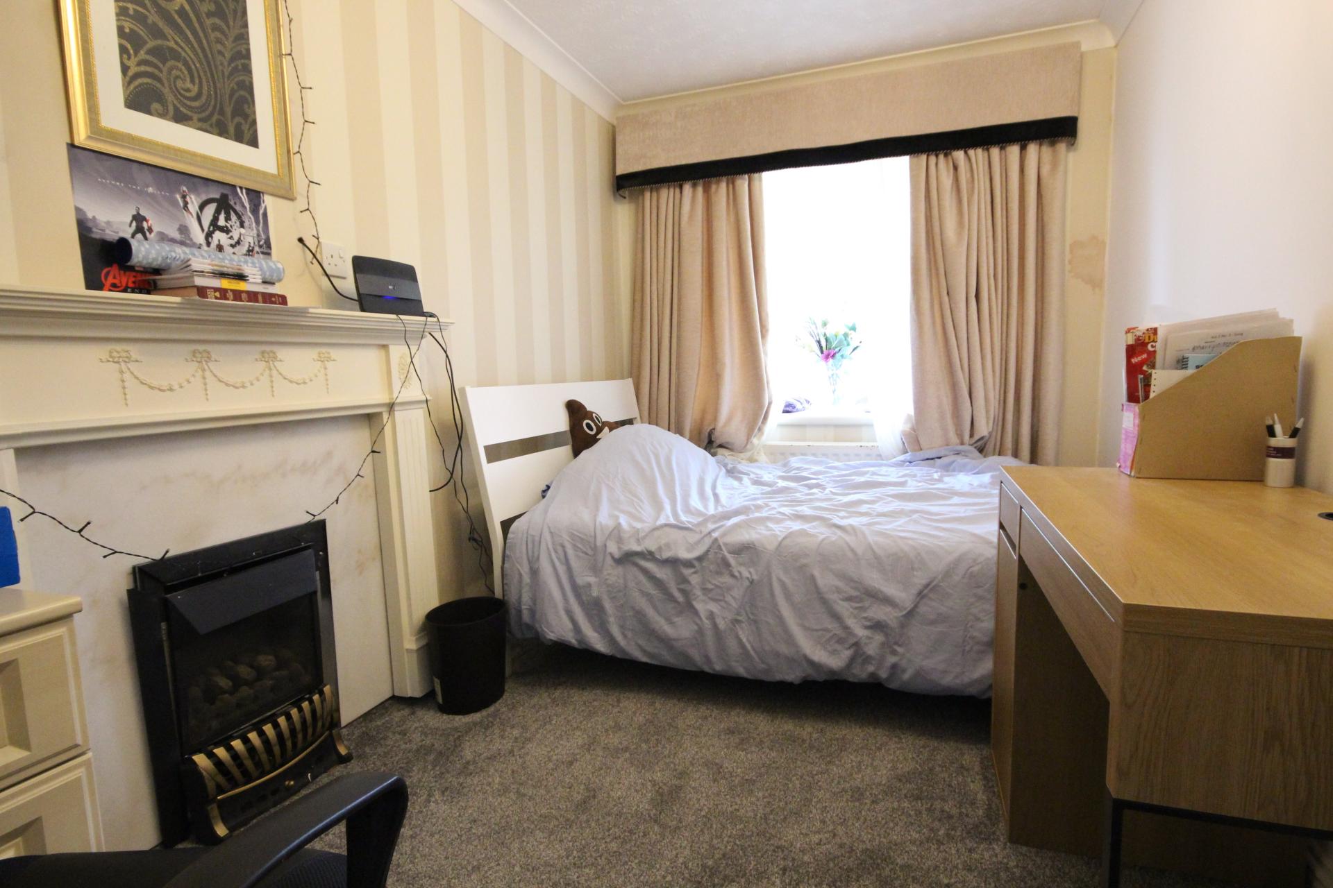 At the heart of this home is an open lounge/kitchen area, making it a social space to enjoy student living. All rooms are equipped with a double bed, a desk, chair, and a wardrobe; additionally, there is a easy parking access located at the front of the house.