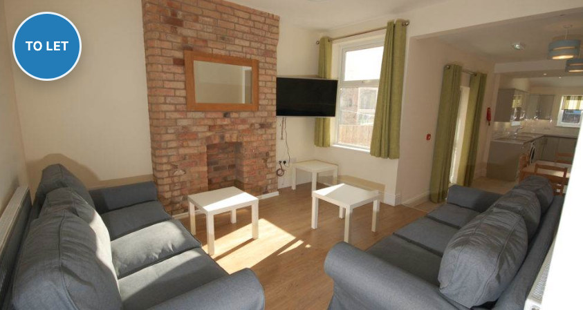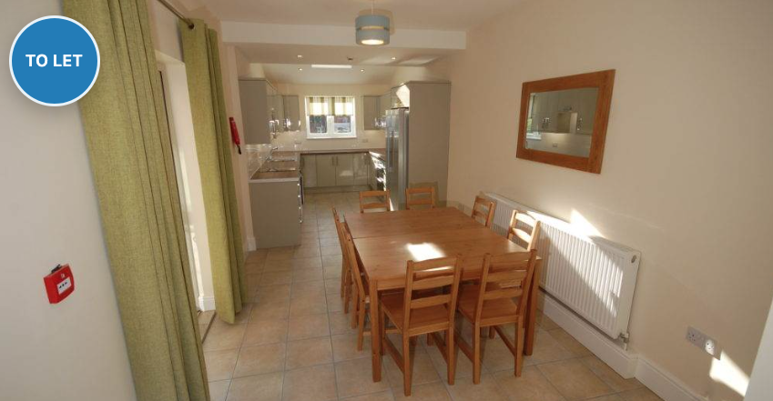 With 32″ smart TV’s in every bedroom and a massive 49″ screen in the sitting-room, it is a significant step up for the student market. The house also has 2 shower rooms, a third bathroom and the downstairs bedroom has an ensuite. The living area is open plan with a massive modern kitchen, dining table for 8 people and then moves through to the adjoining sitting-room. French doors lead out on to the large patio area complete with a picnic bench. With high security including CCTV, locked alleyway and burglar alarm system you can feel totally secure. We only have two houses like this, with the next door house being identical.