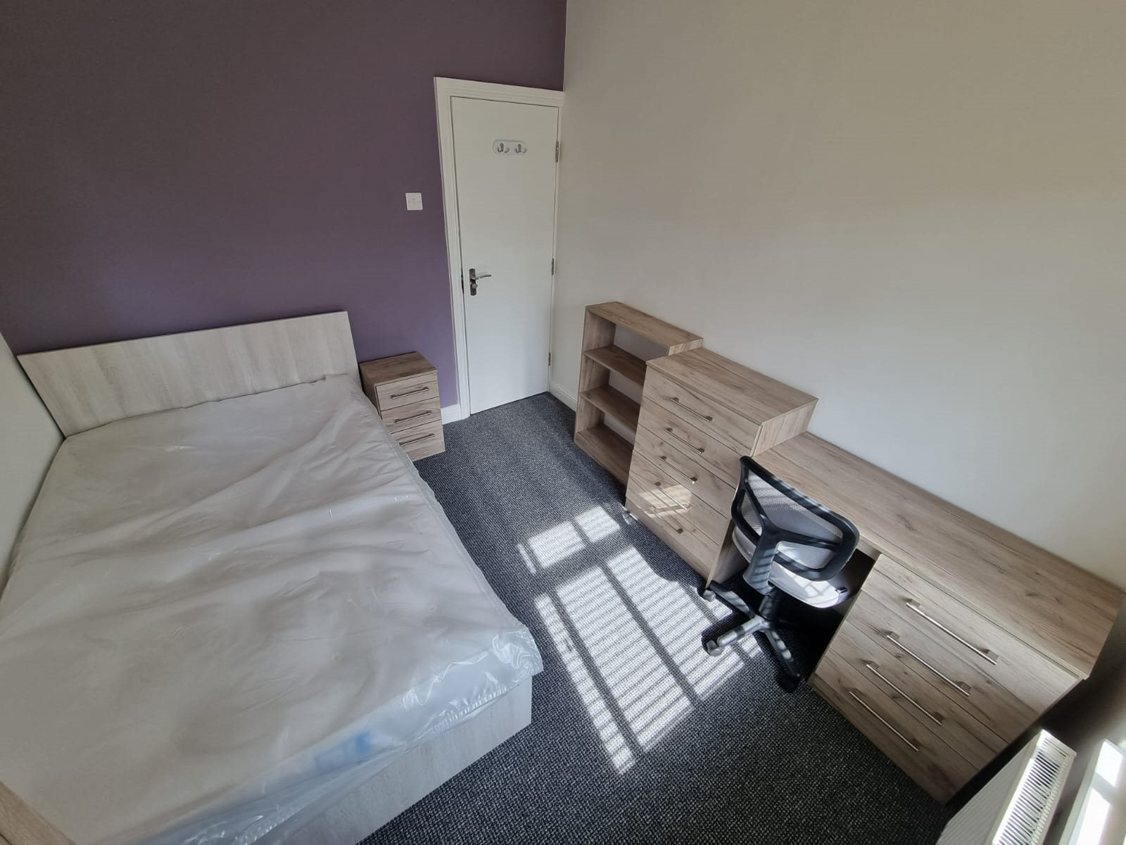 - Bedroom furniture: bed, desk, desk chair, wardrobe, and drawers