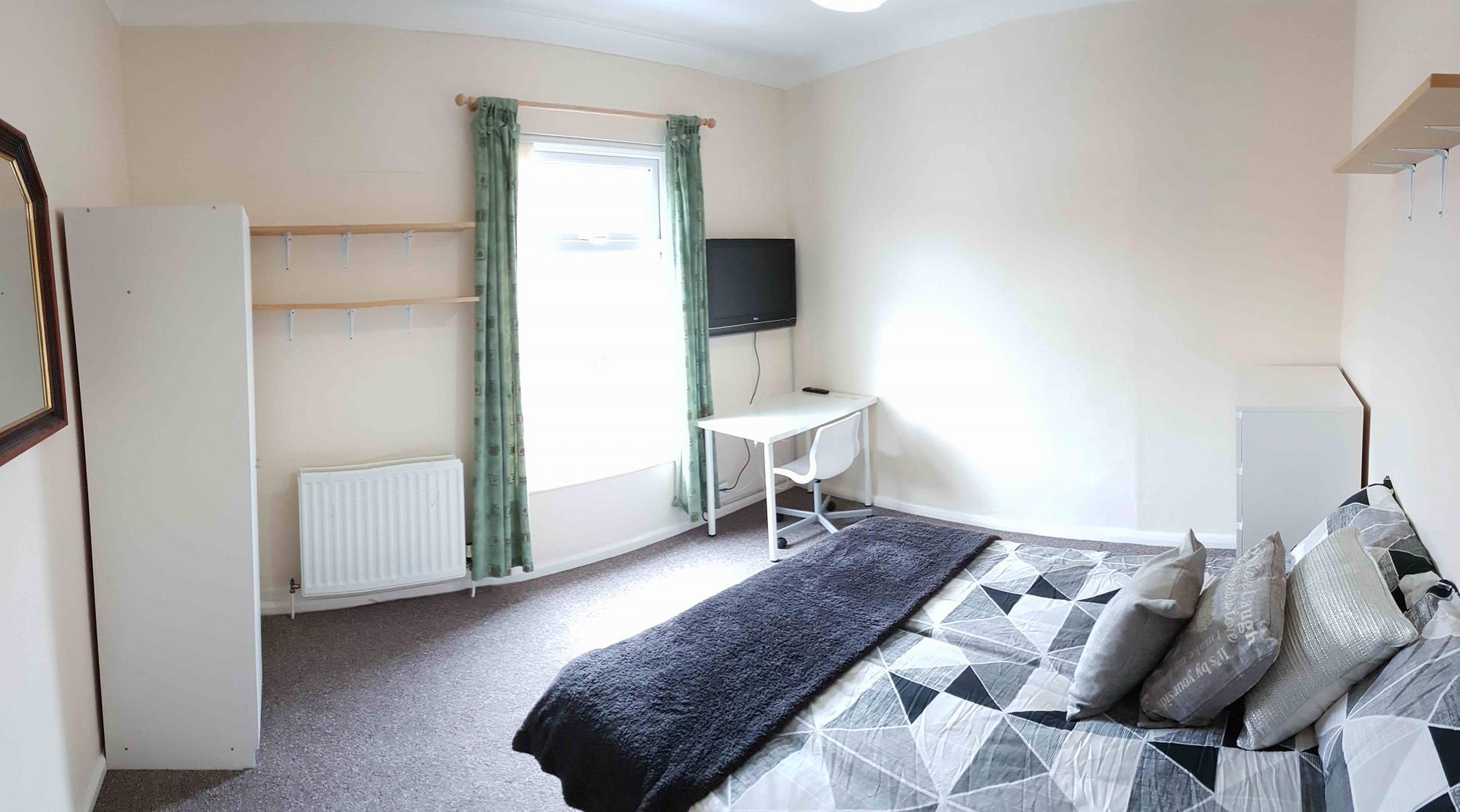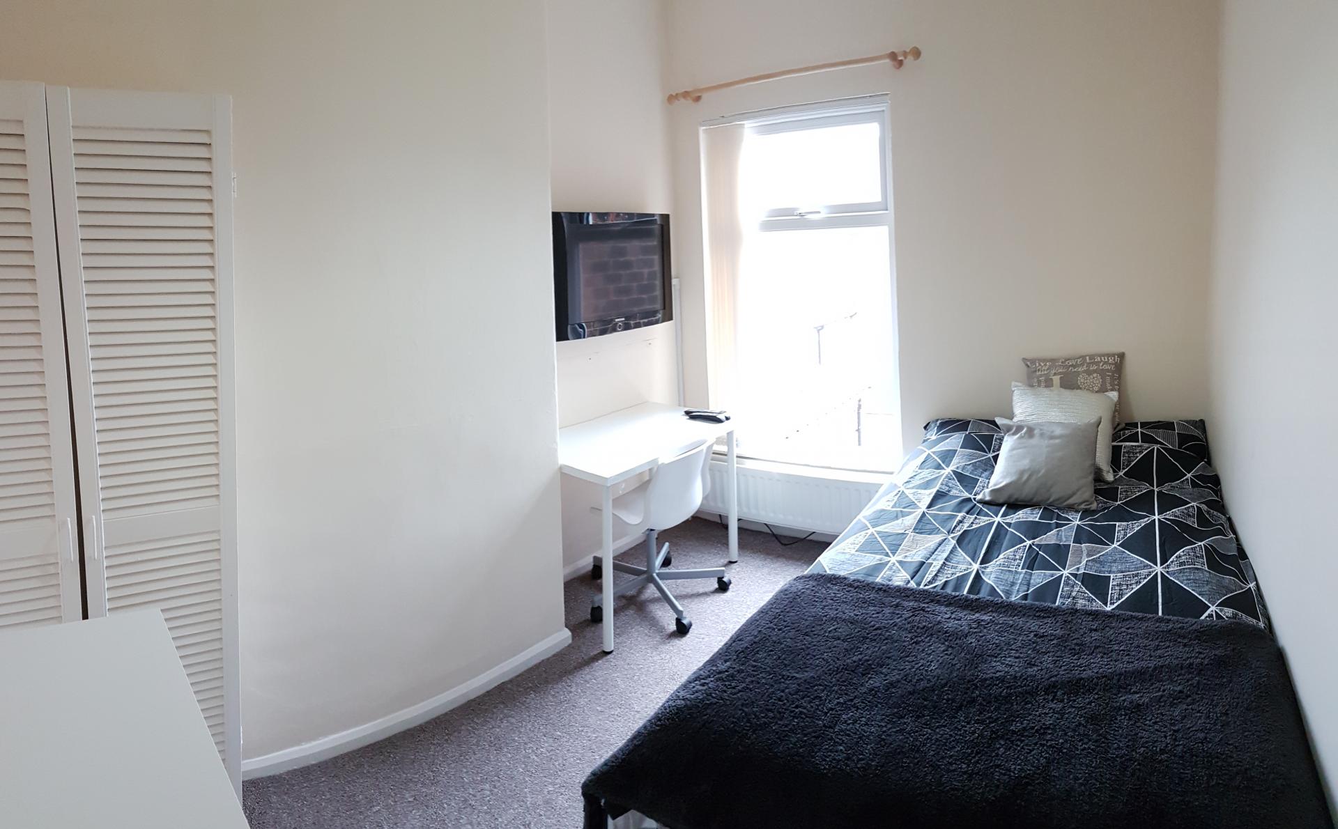 - Bedroom furniture: bed, desk, desk chair, wardrobe, and drawers