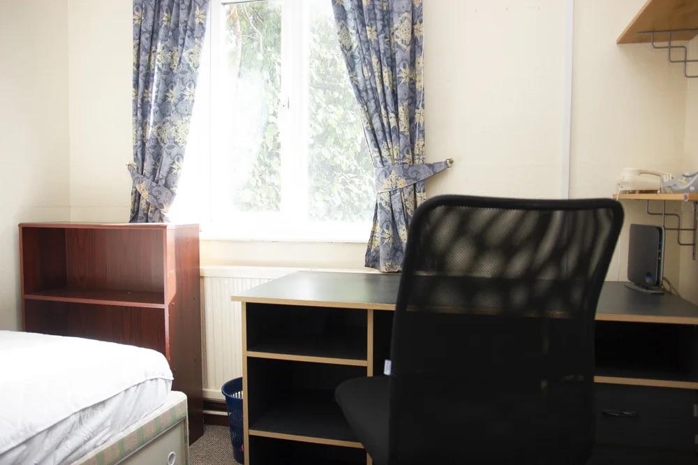 - Bedroom furniture: bed, desk, desk chair, wardrobe, and drawers