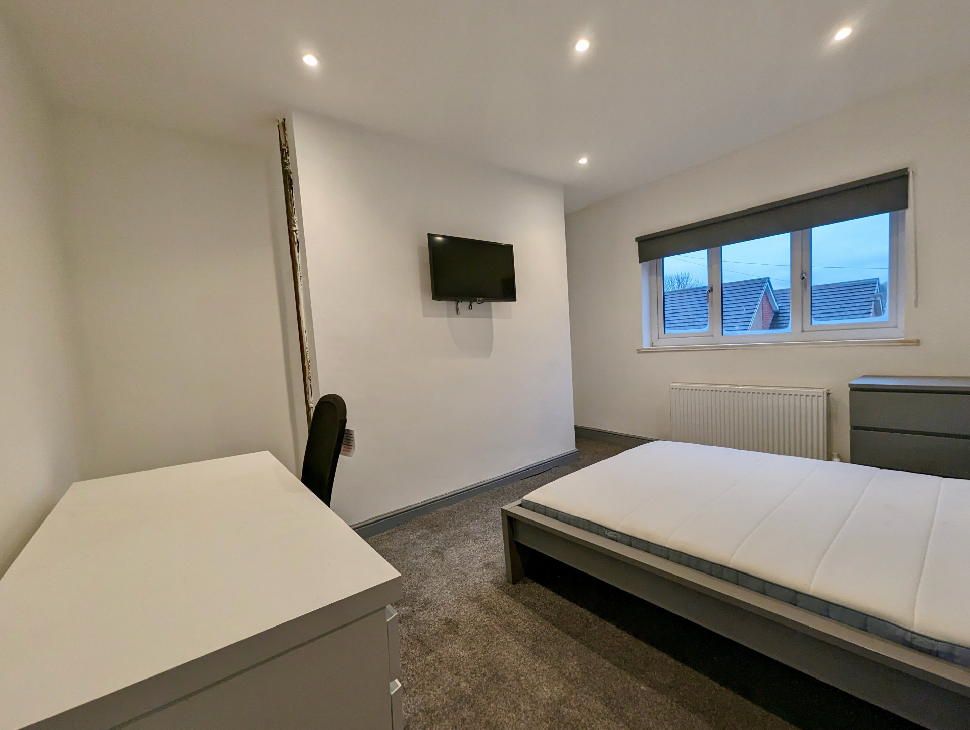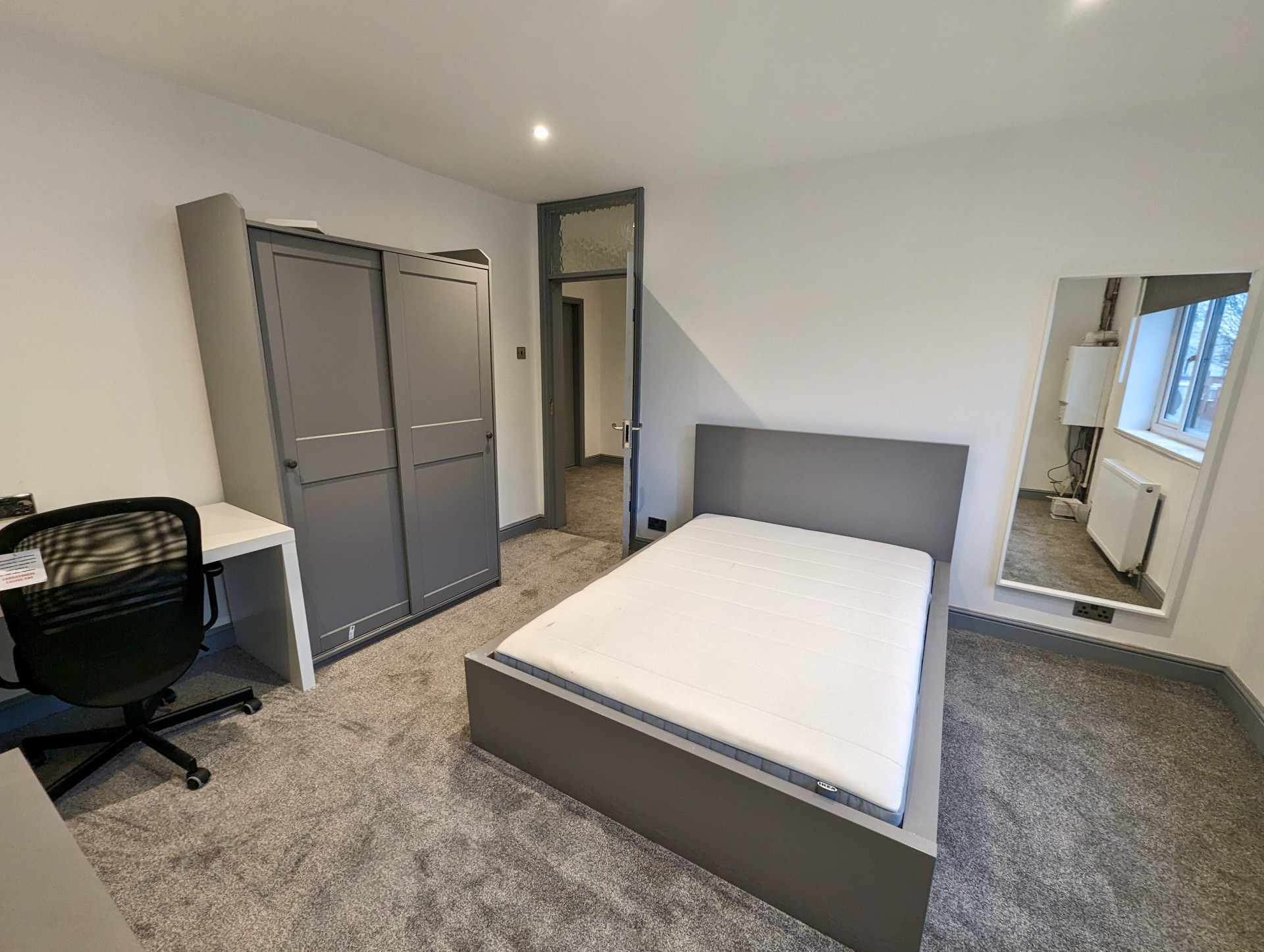 - Bedroom furniture: bed, desk, desk chair, wardrobe, and drawers