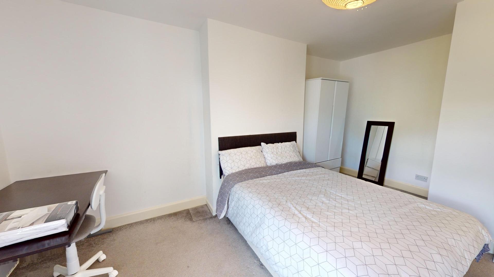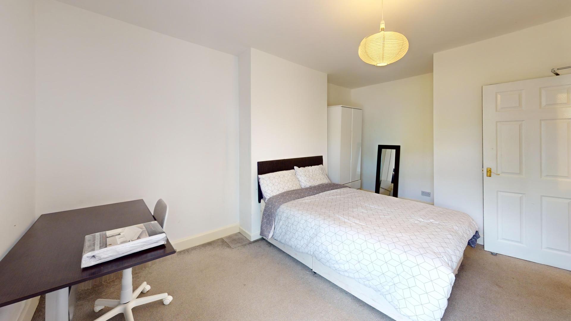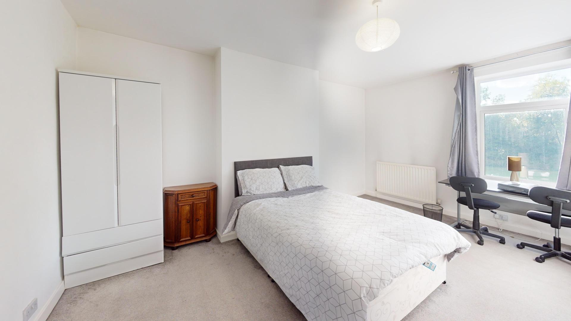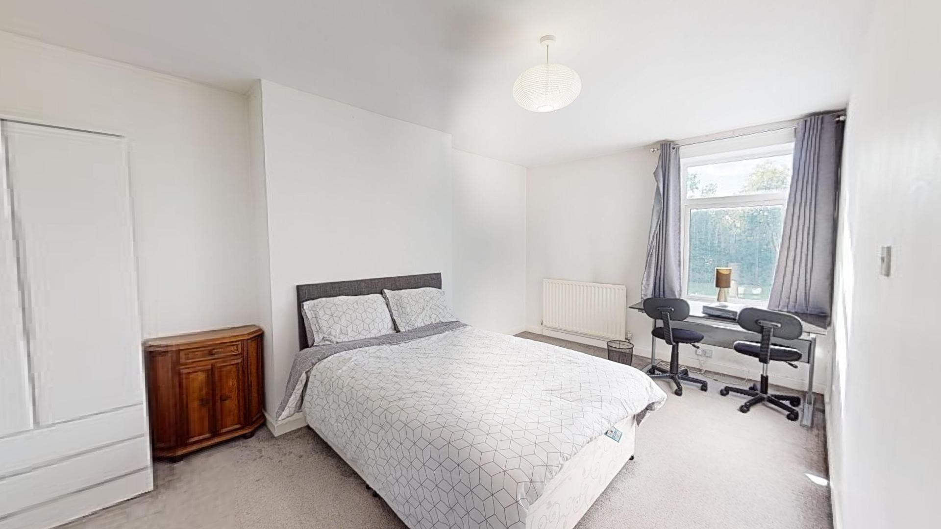 - Bedroom furniture: bed, desk, desk chair, wardrobe, and drawers