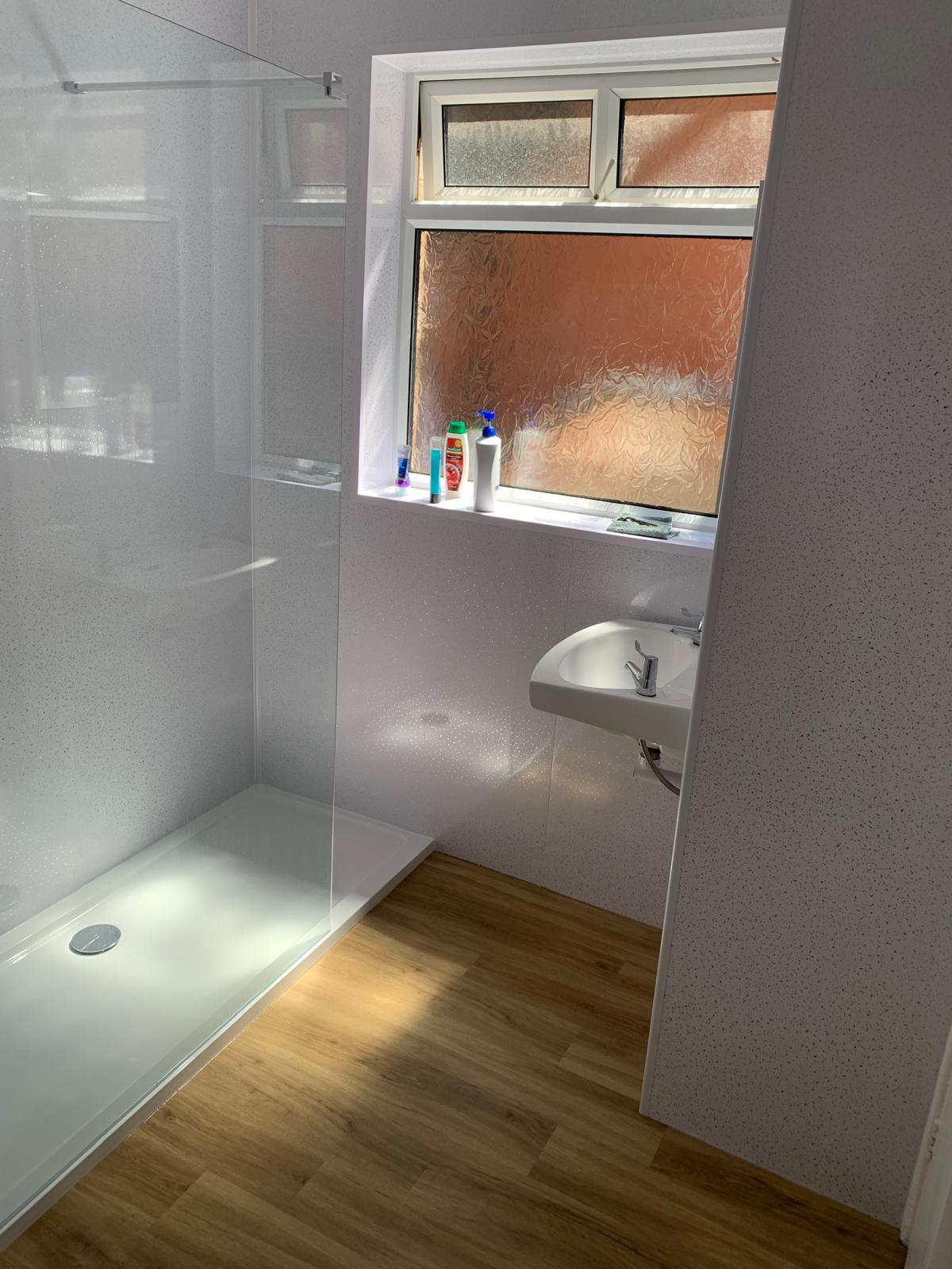 Shared bathroom to be refurbished June 25 (photo of existing 2nd bathroom which has already been refurbished): includes an electric shower over the bath, plus a separate toilet for convenience.