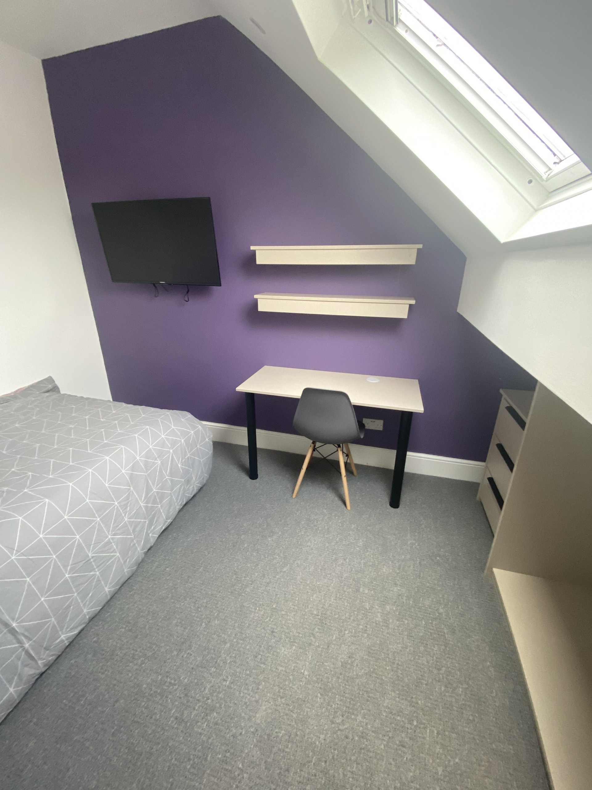 - Bedroom furniture: bed, desk, desk chair, wardrobe, and drawers