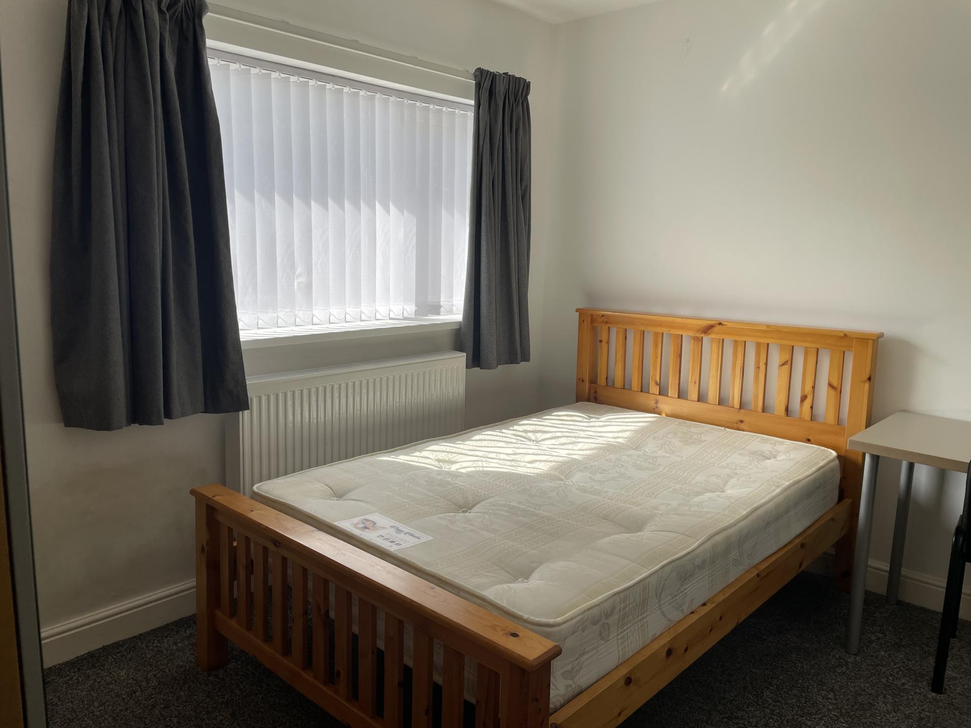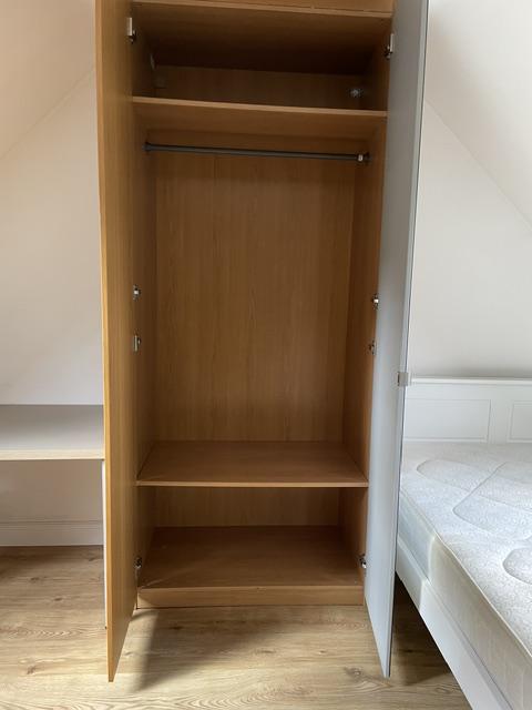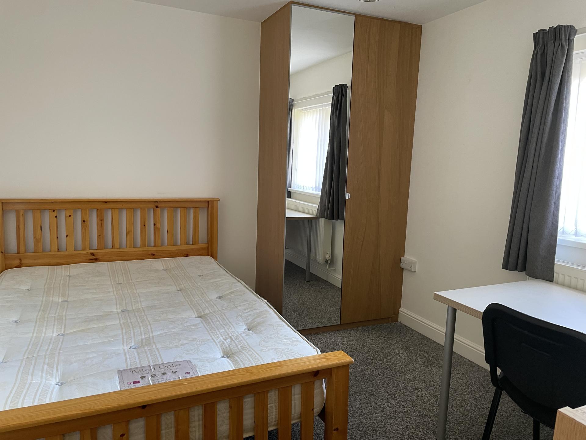 - Bedroom furniture: bed, desk, desk chair, wardrobe, and drawers