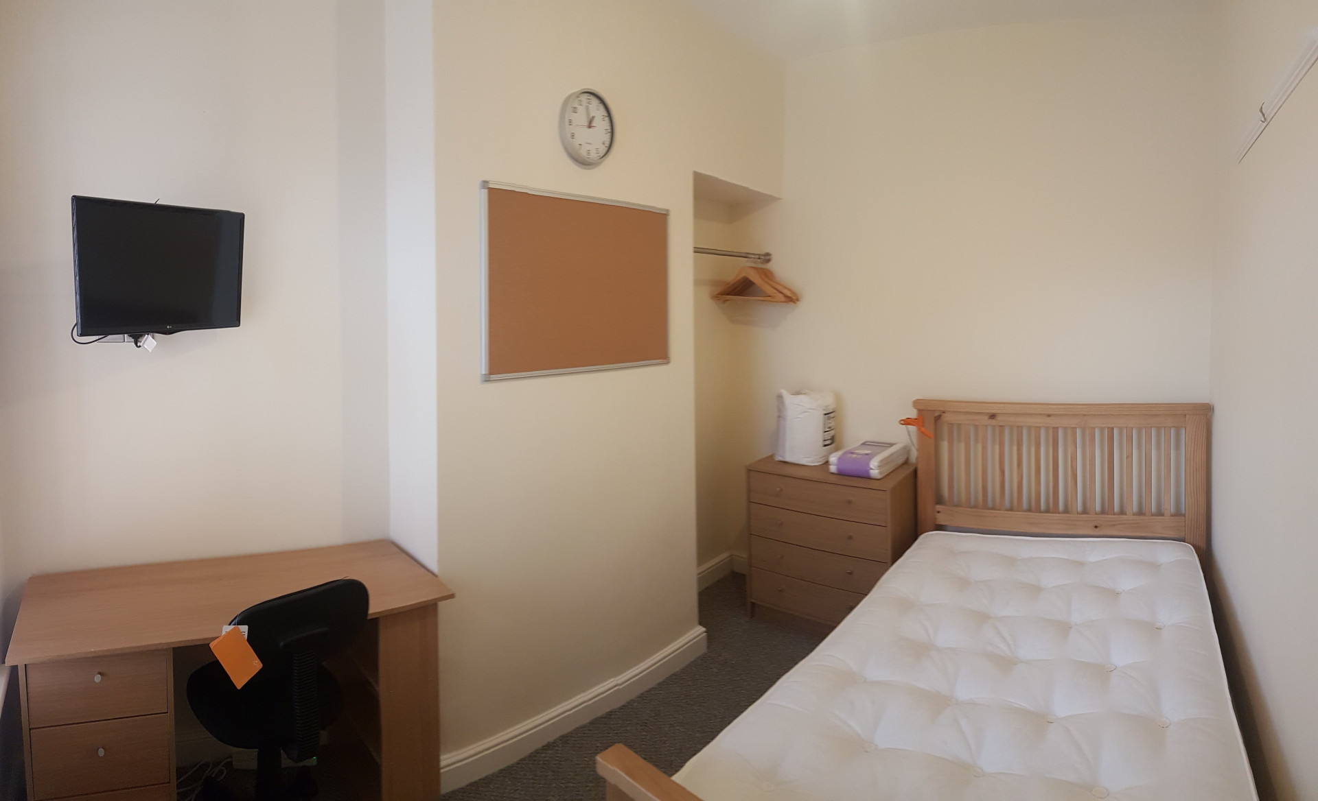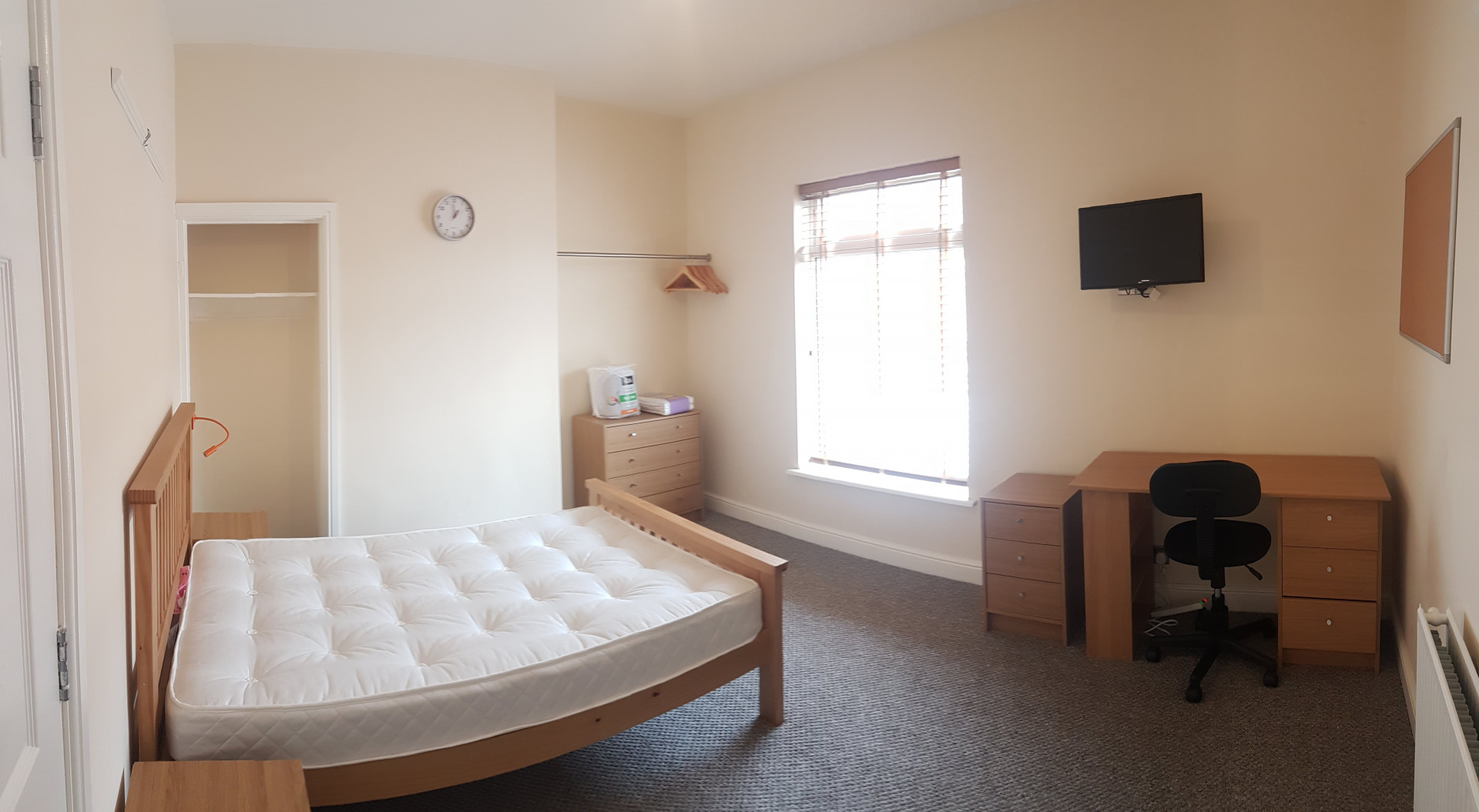- Bedroom furniture: bed, desk, desk chair, wardrobe, and drawers