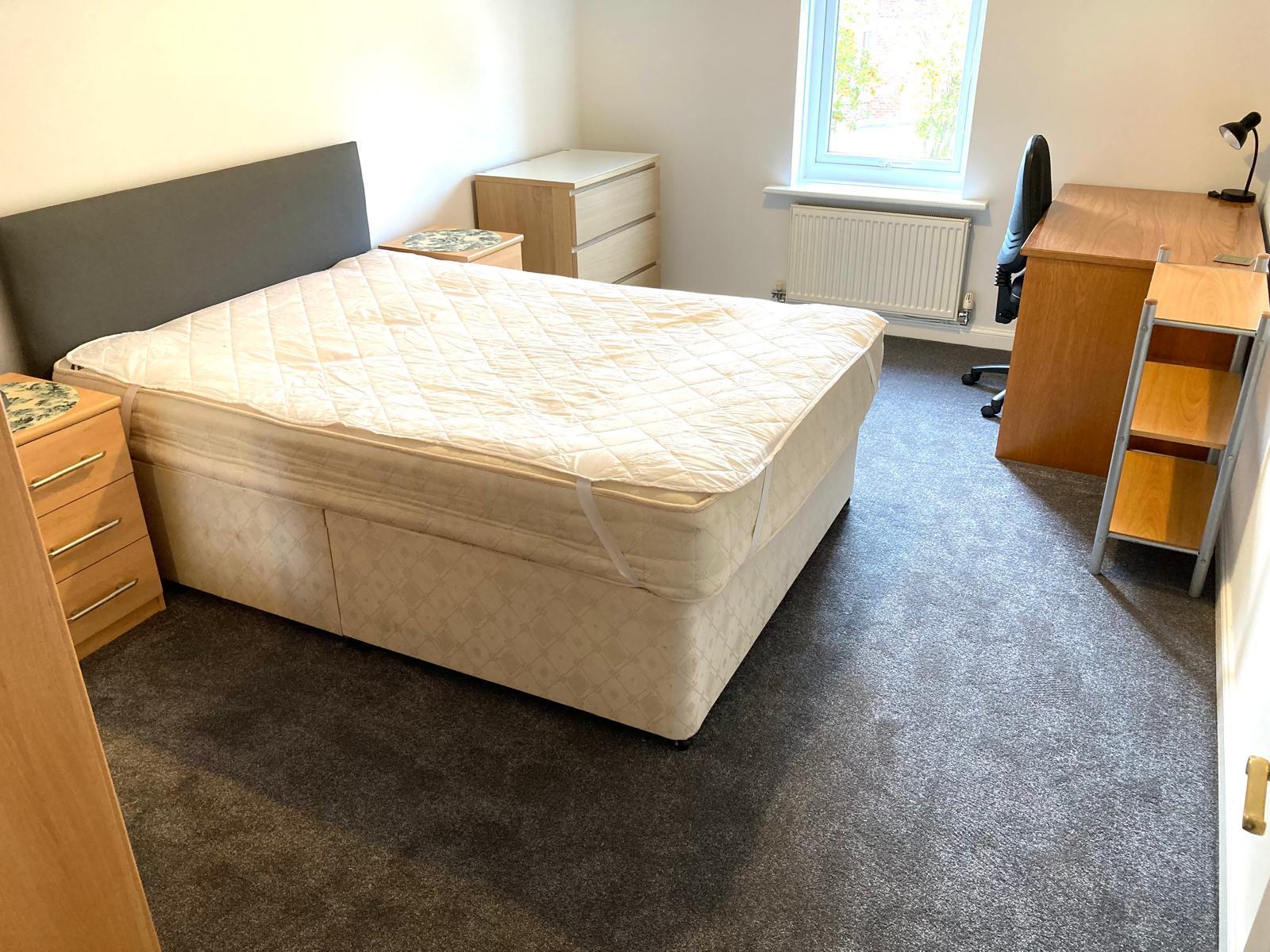- Bedroom furniture: bed, desk, desk chair, wardrobe, and drawers