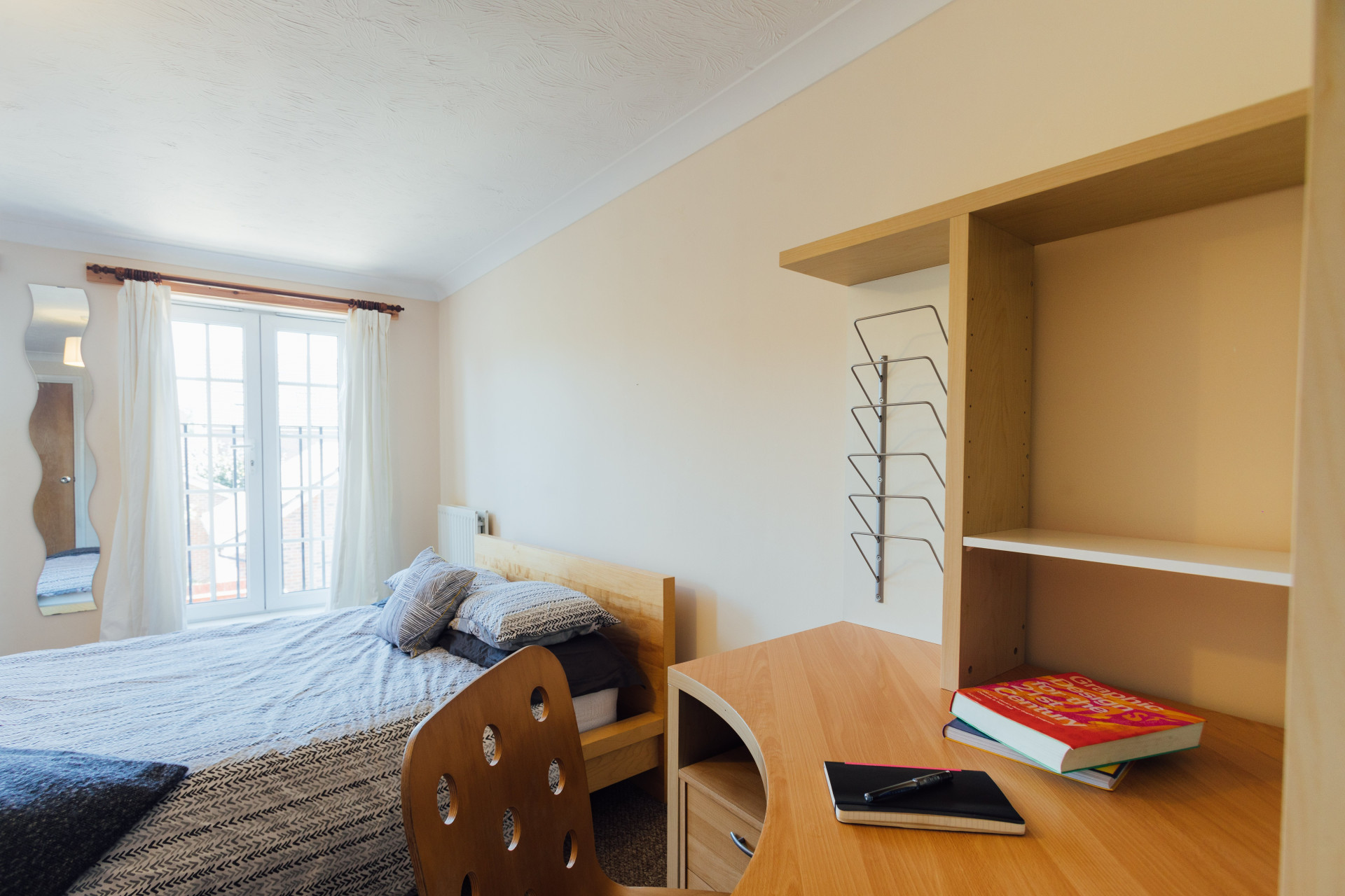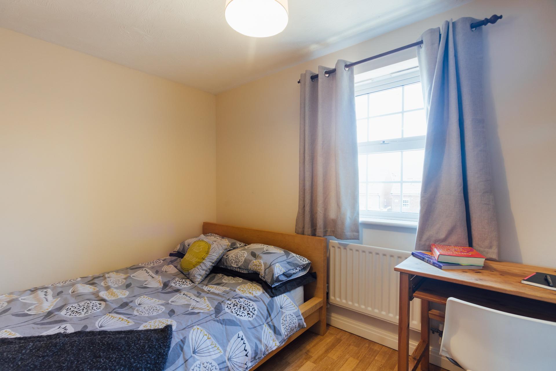 - Bedroom furniture: bed, desk, desk chair, wardrobe, and drawers