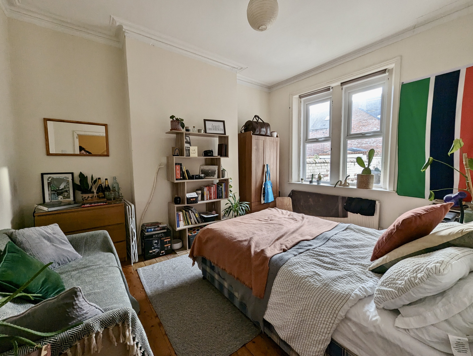 At the heart of this Edwardian home is a large bright lounge area, making it ideal for socialising and enjoying the university lifestyle. All rooms are equipped with a desk, chair, wardrobe, and double bed; additionally, the property has two bathrooms and a toilet, making it easy to share amongst housemates.