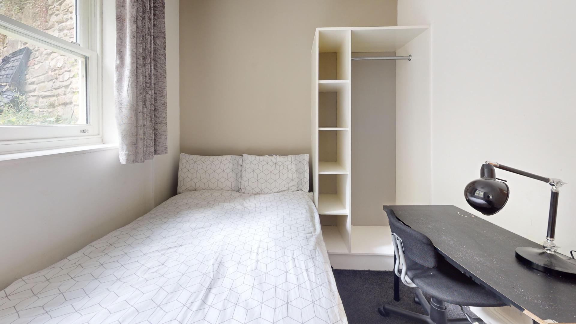 - Bedroom furniture: bed, desk, desk chair, wardrobe, and drawers