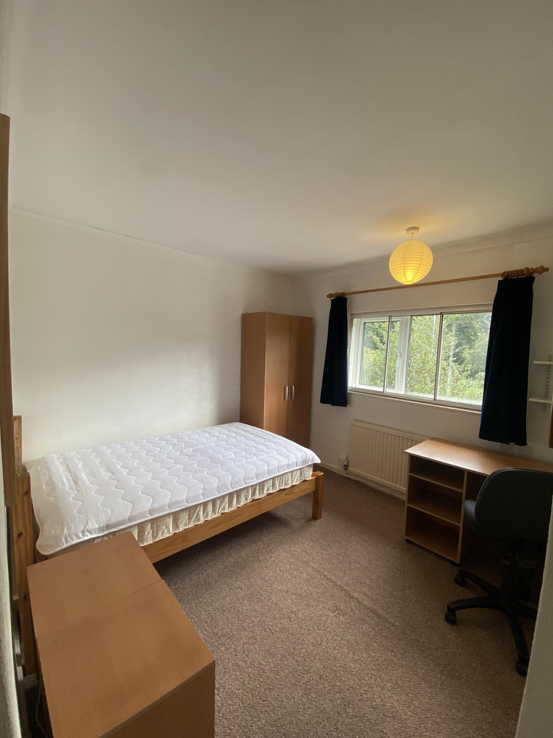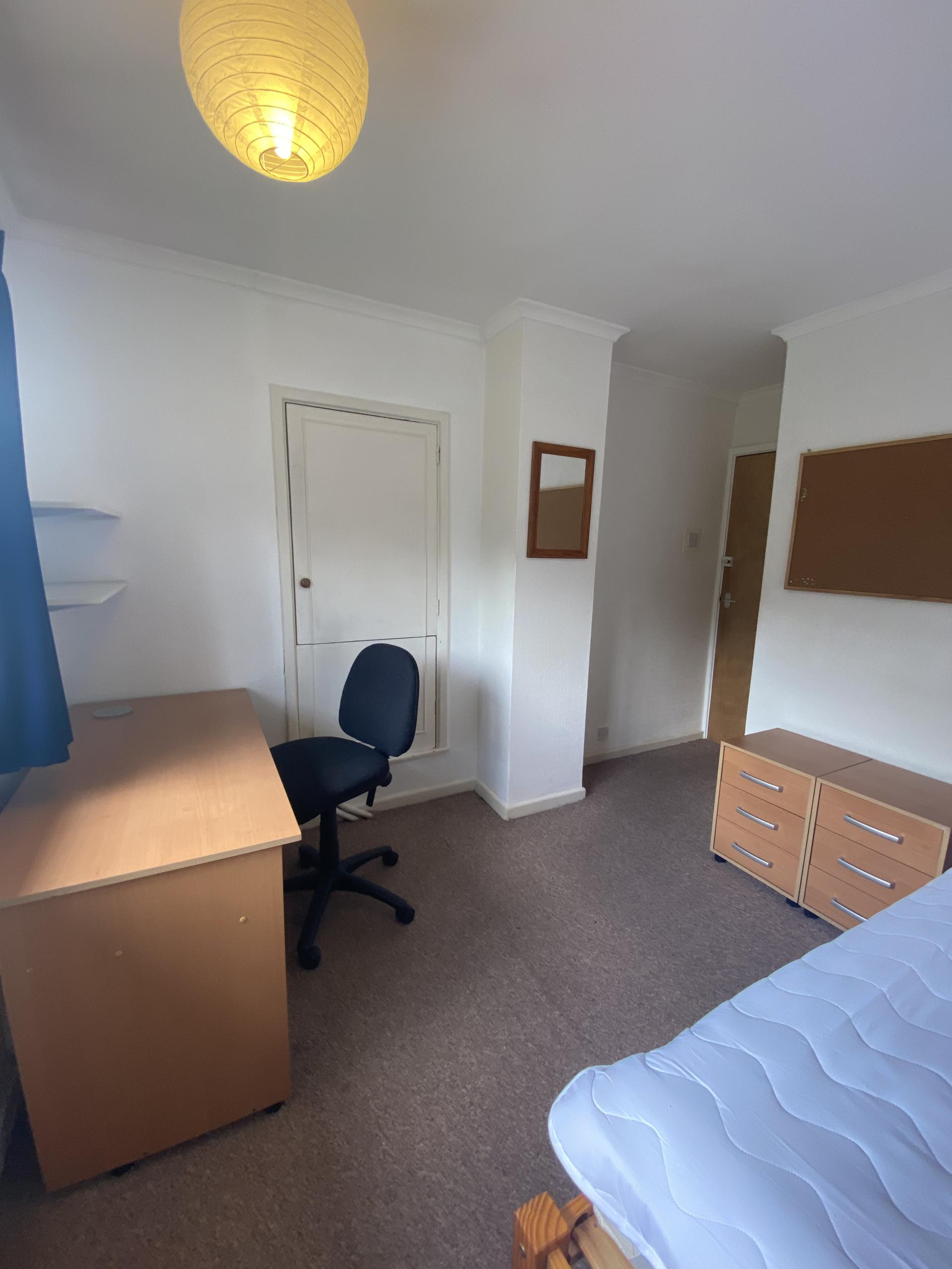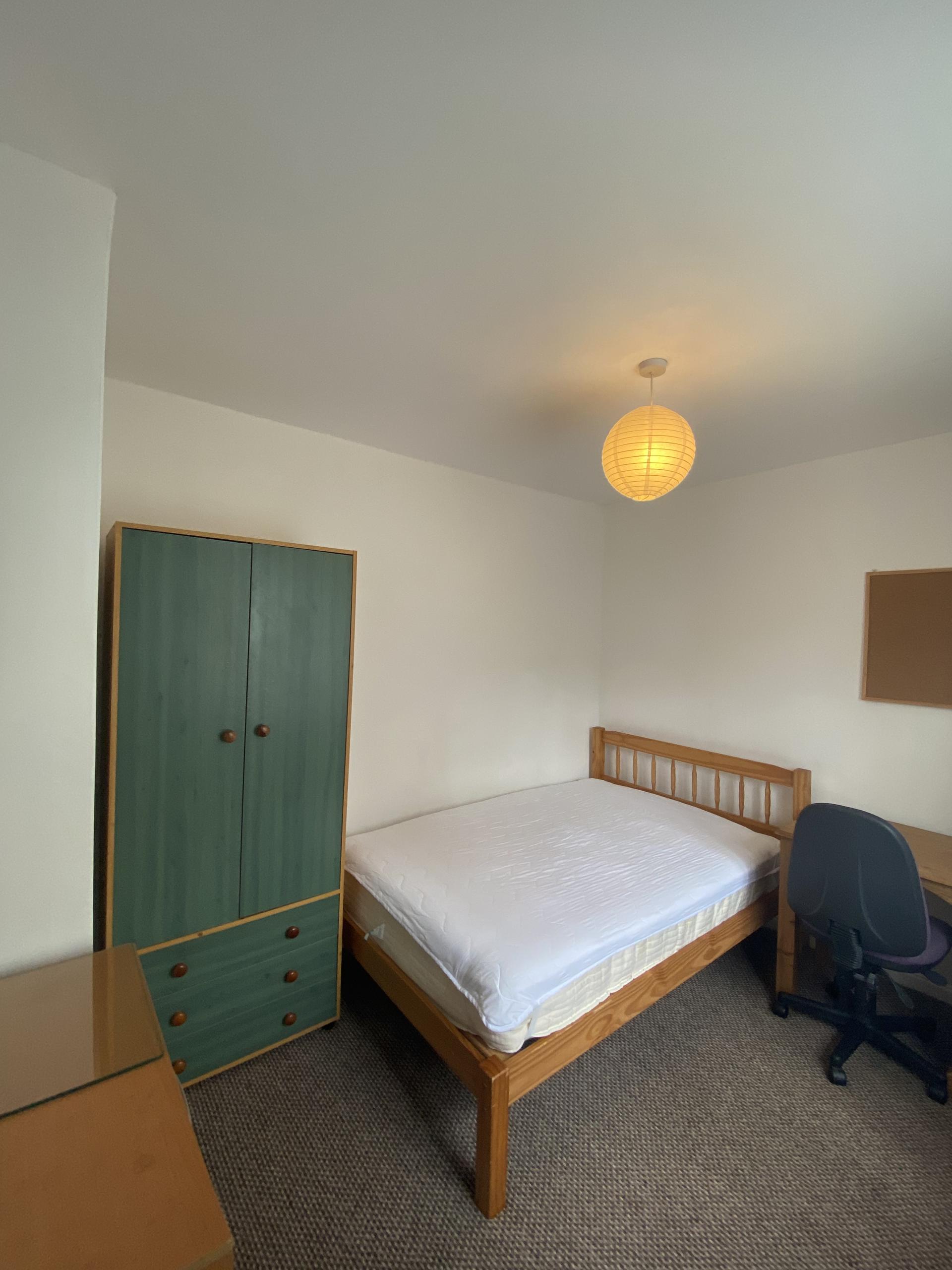- Bedroom furniture: bed, desk, desk chair, wardrobe, and drawers