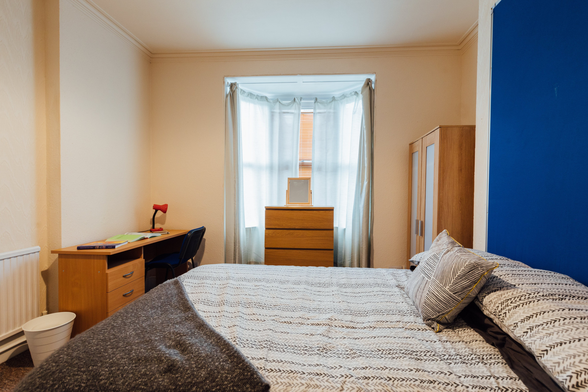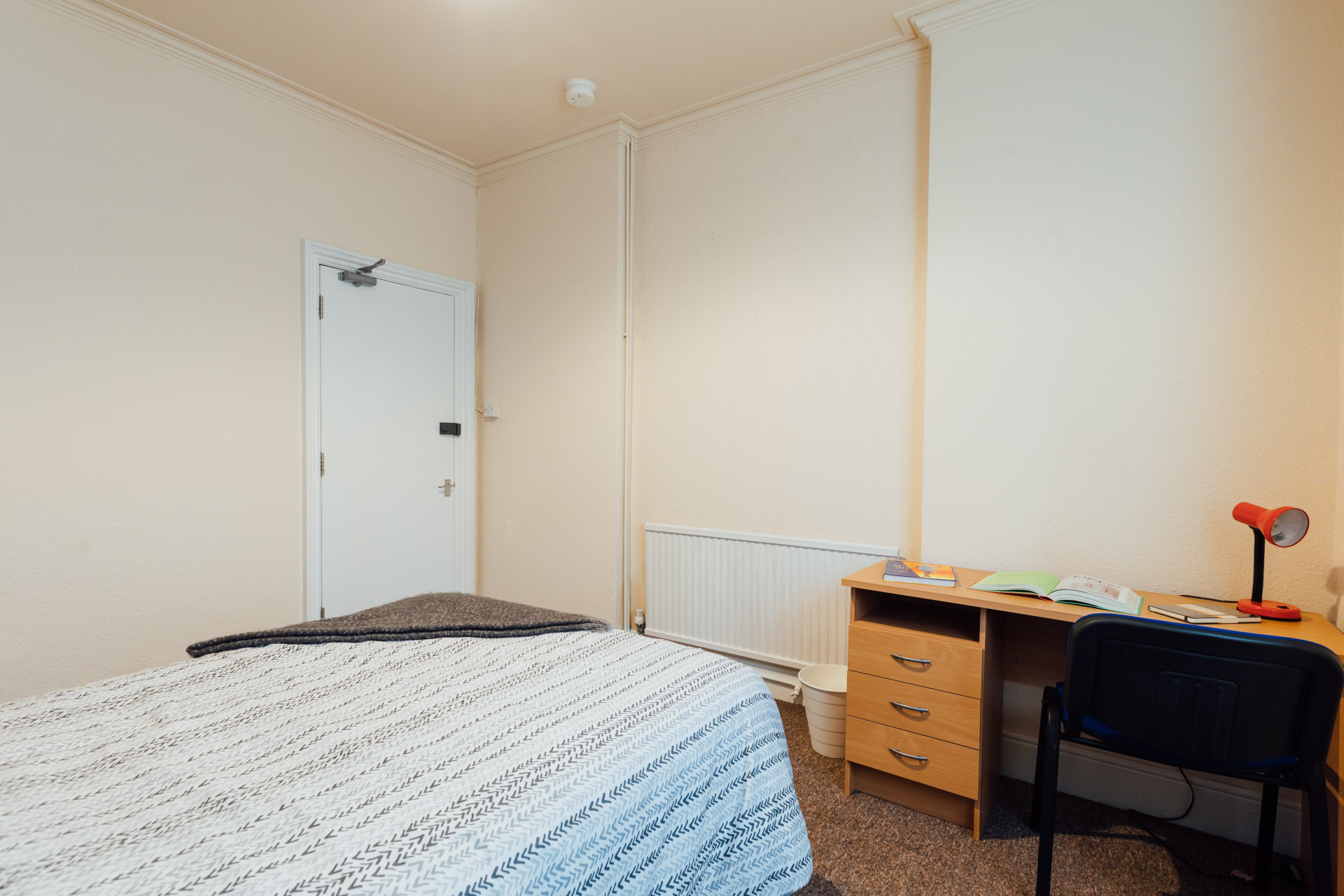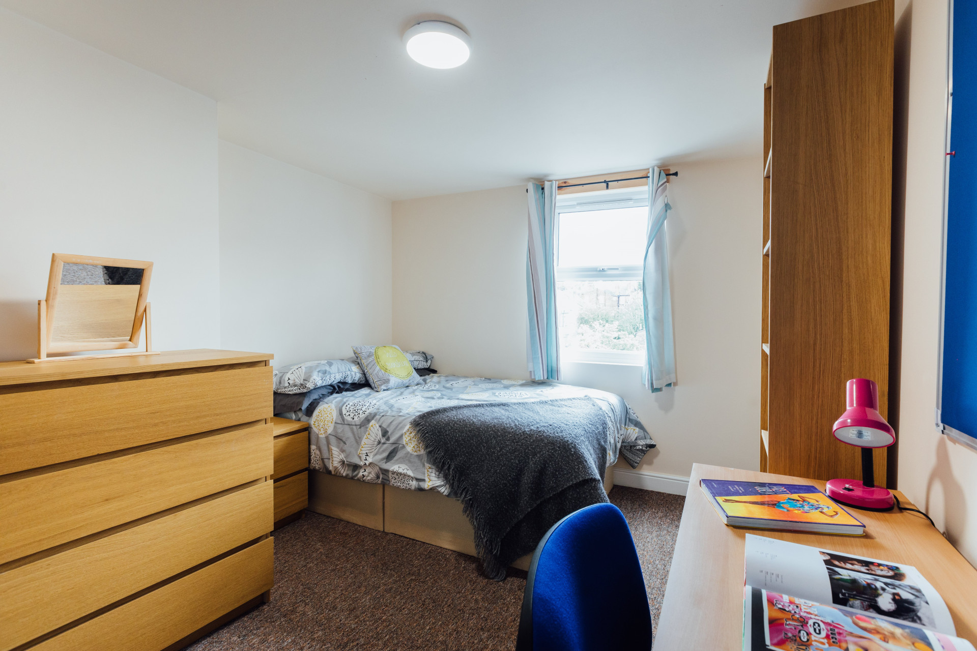 - Bedroom furniture: bed, desk, desk chair, wardrobe, and drawers