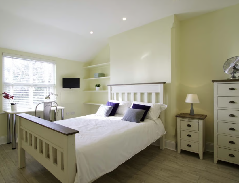 - Bedroom furniture: bed, desk, desk chair, wardrobe, and drawers