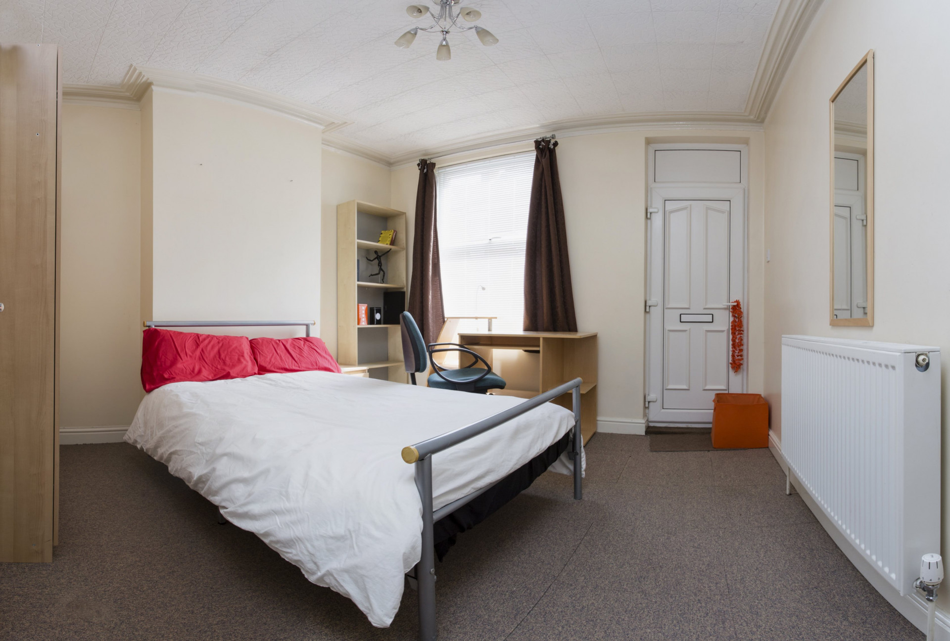 - Bedroom furniture: bed, desk, desk chair, wardrobe, and drawers