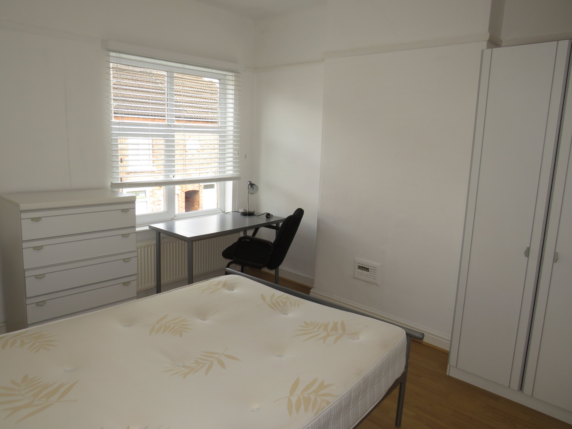 - Bedroom furniture: bed, desk, desk chair, wardrobe, and drawers