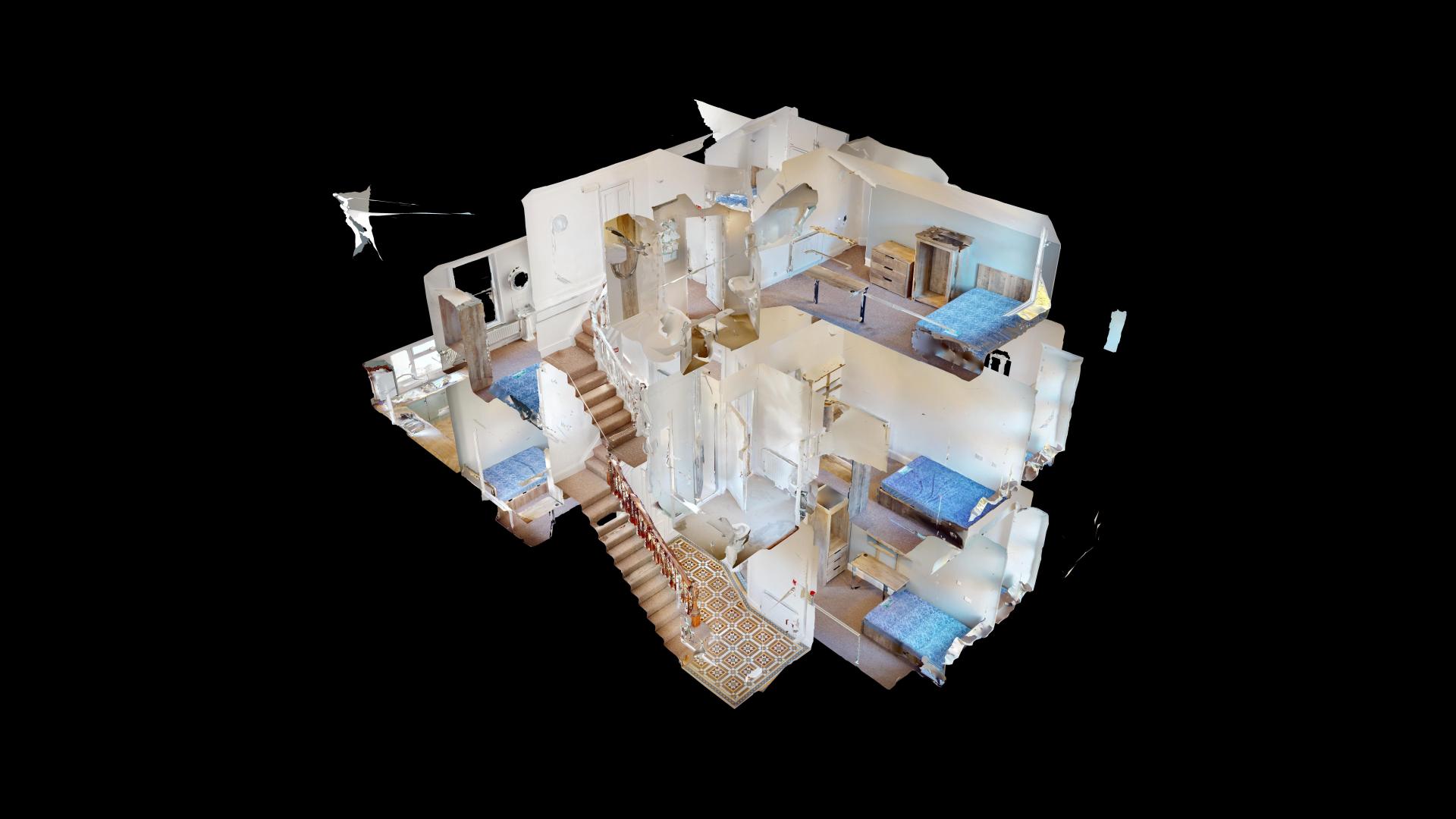 - Bedroom furniture: bed, desk, desk chair, wardrobe, and drawers