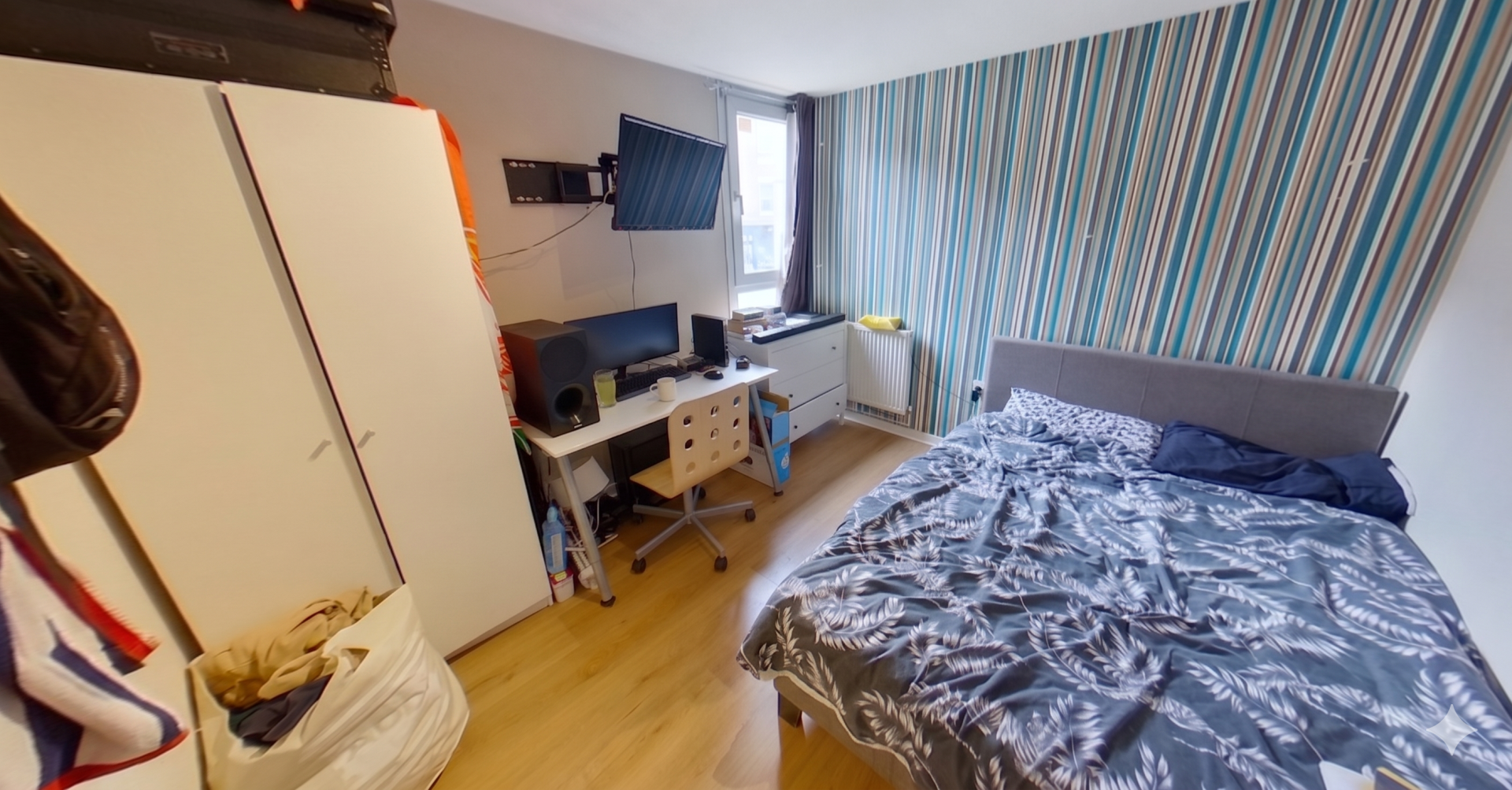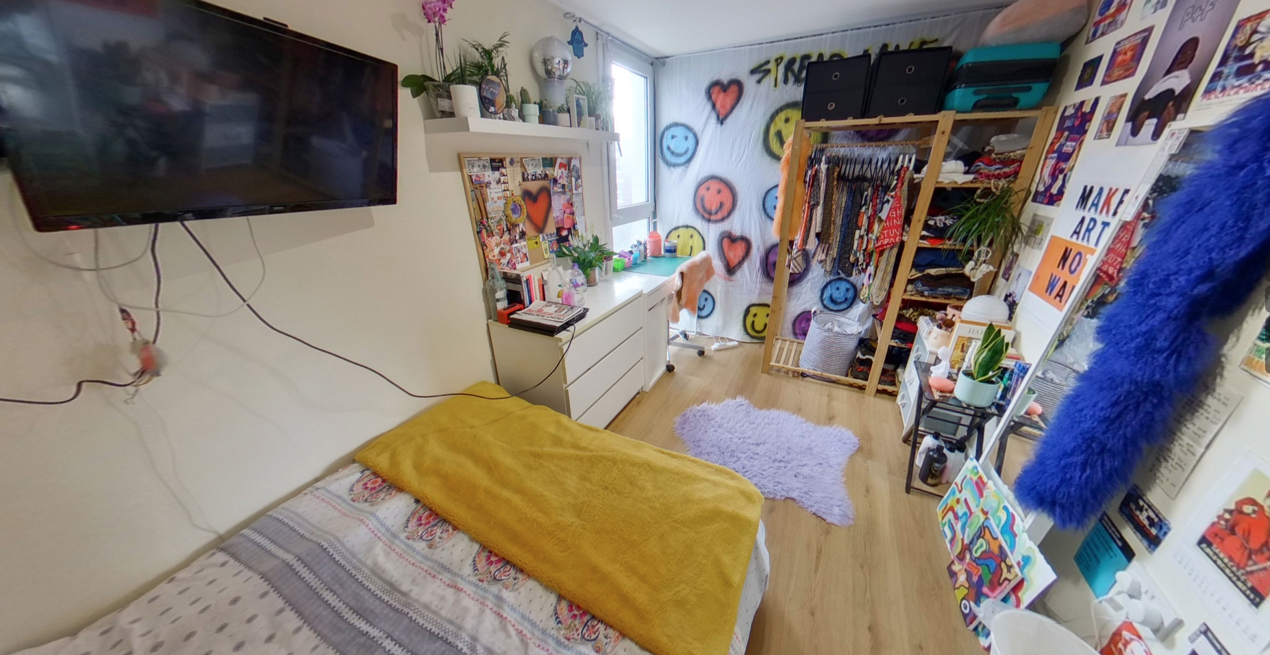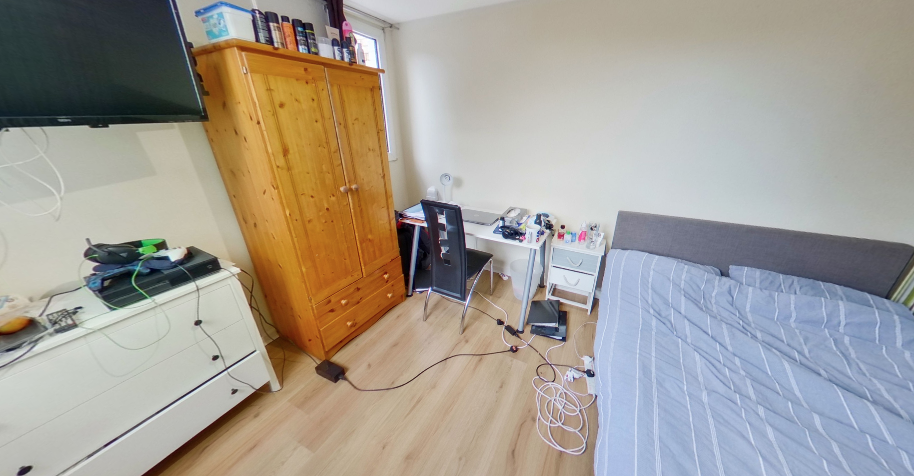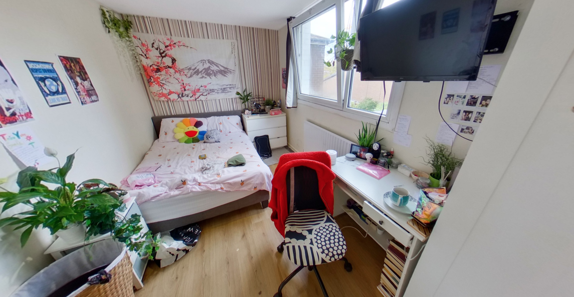 - Bedroom furniture: bed, desk, desk chair, wardrobe, and drawers