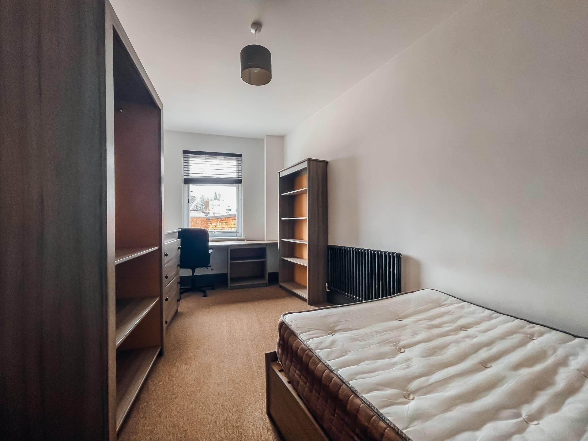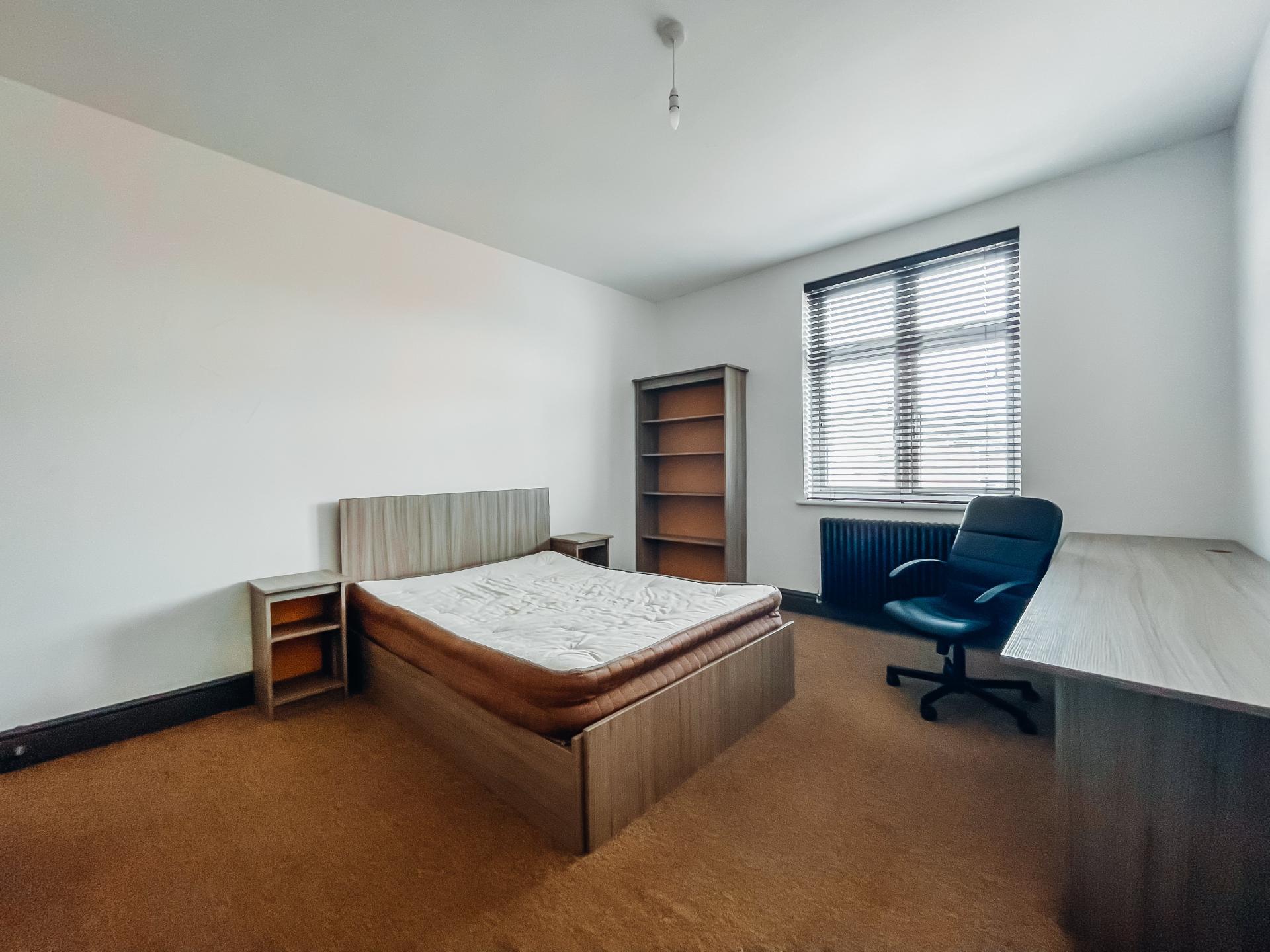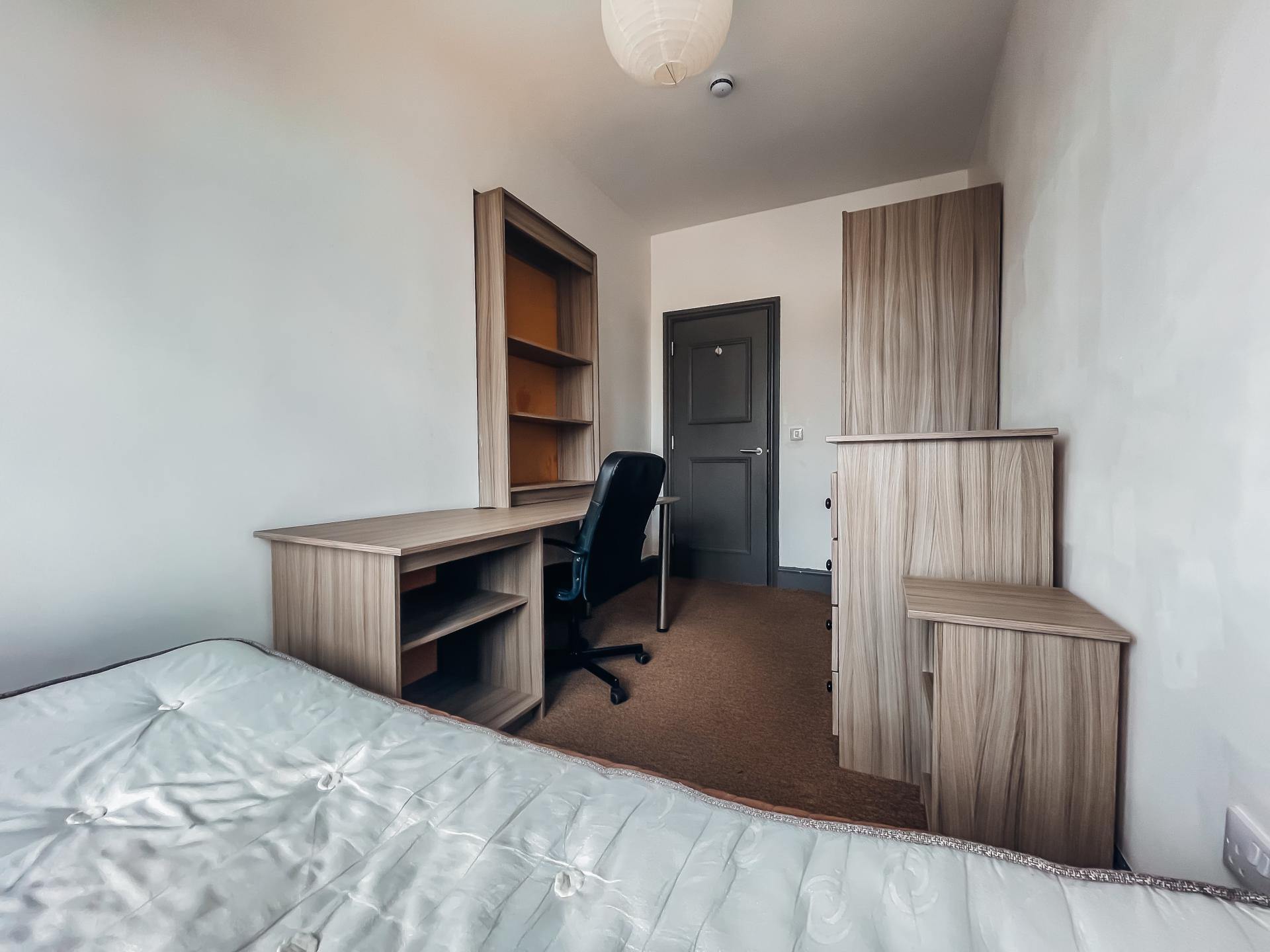 - Bedroom furniture: bed, desk, desk chair, wardrobe, and drawers