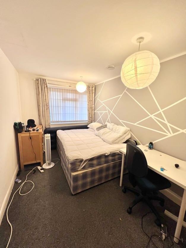 - Bedroom furniture: bed, desk, desk chair, wardrobe, and drawers