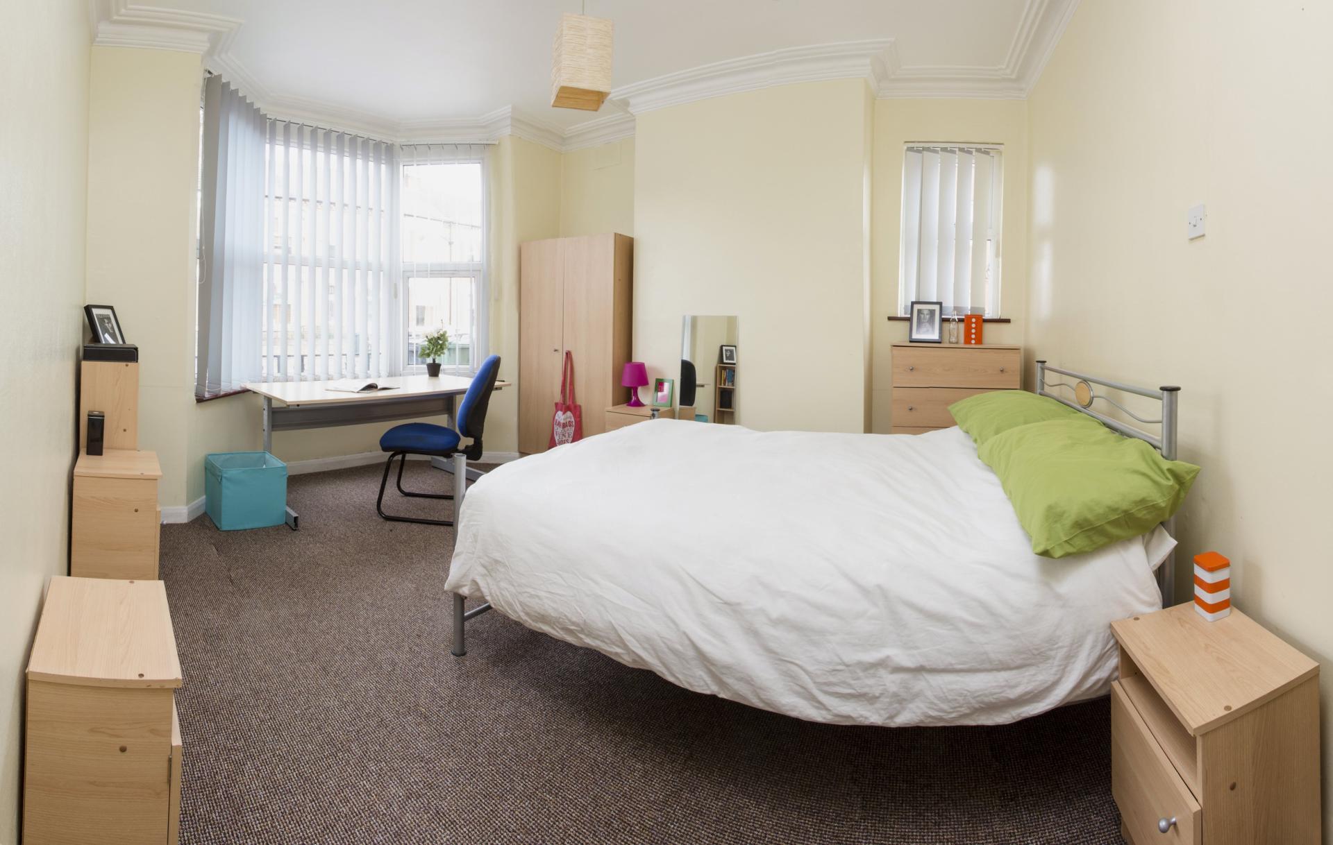 - Bedroom furniture: bed, desk, desk chair, wardrobe, and drawers