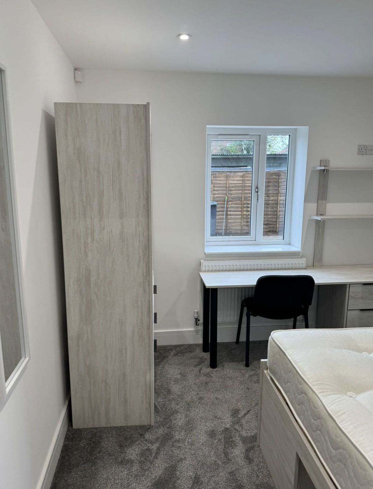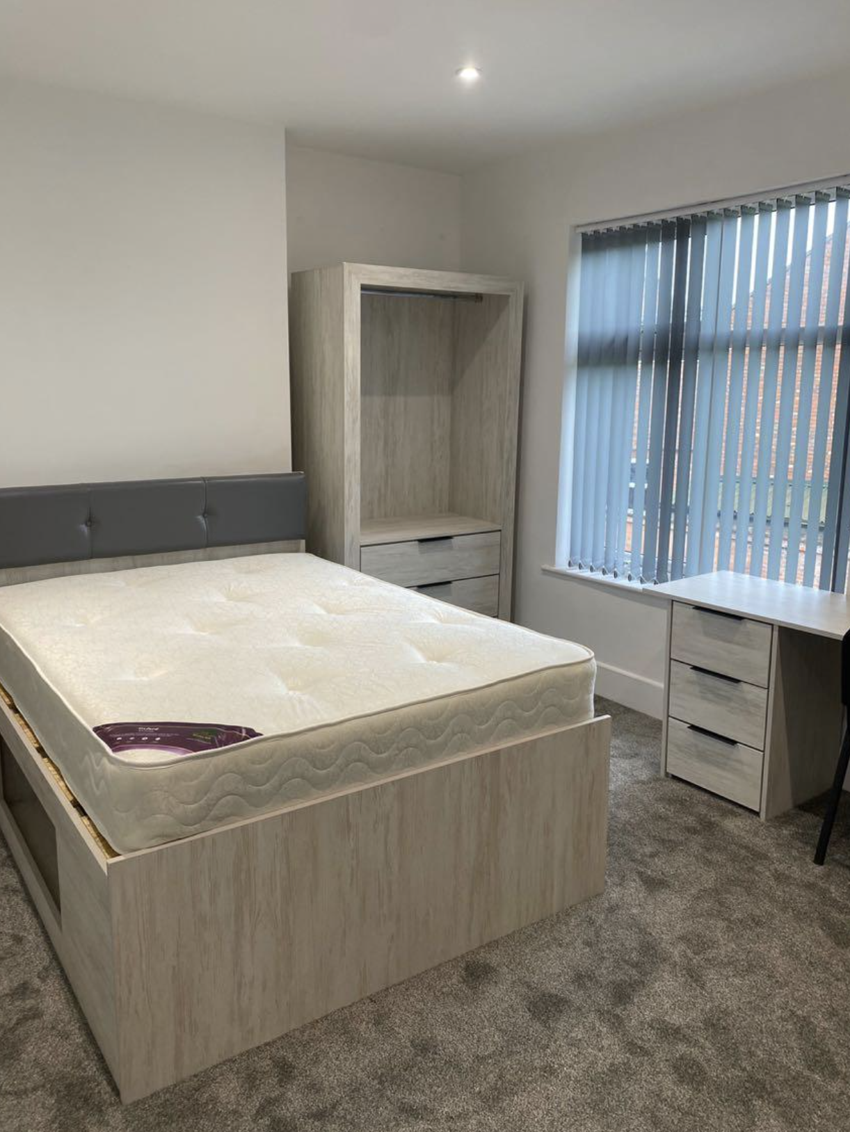 - Bedroom furniture: bed, desk, desk chair, wardrobe, and drawers