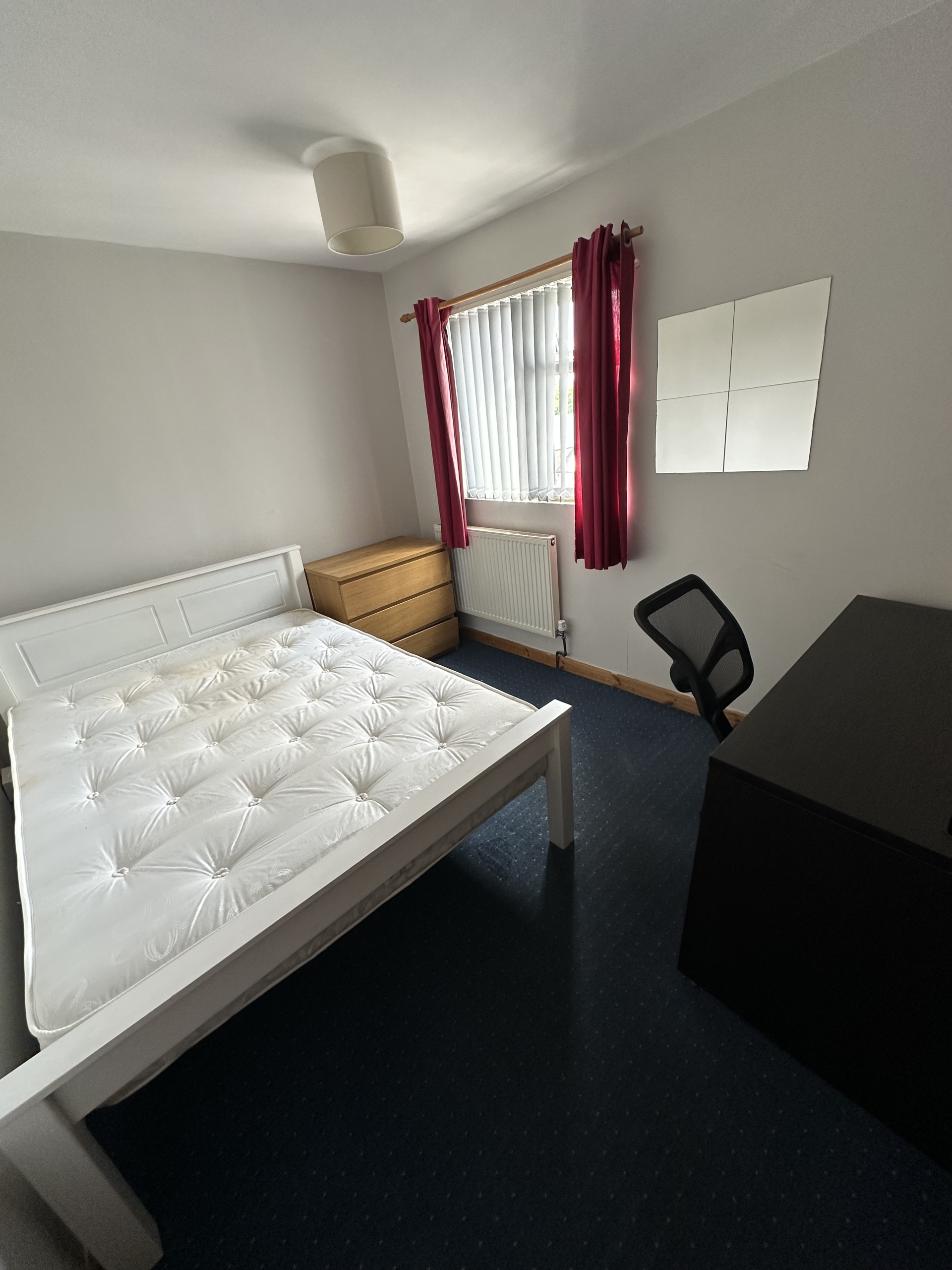 - Bedroom furniture: bed, desk, desk chair, wardrobe, and drawers